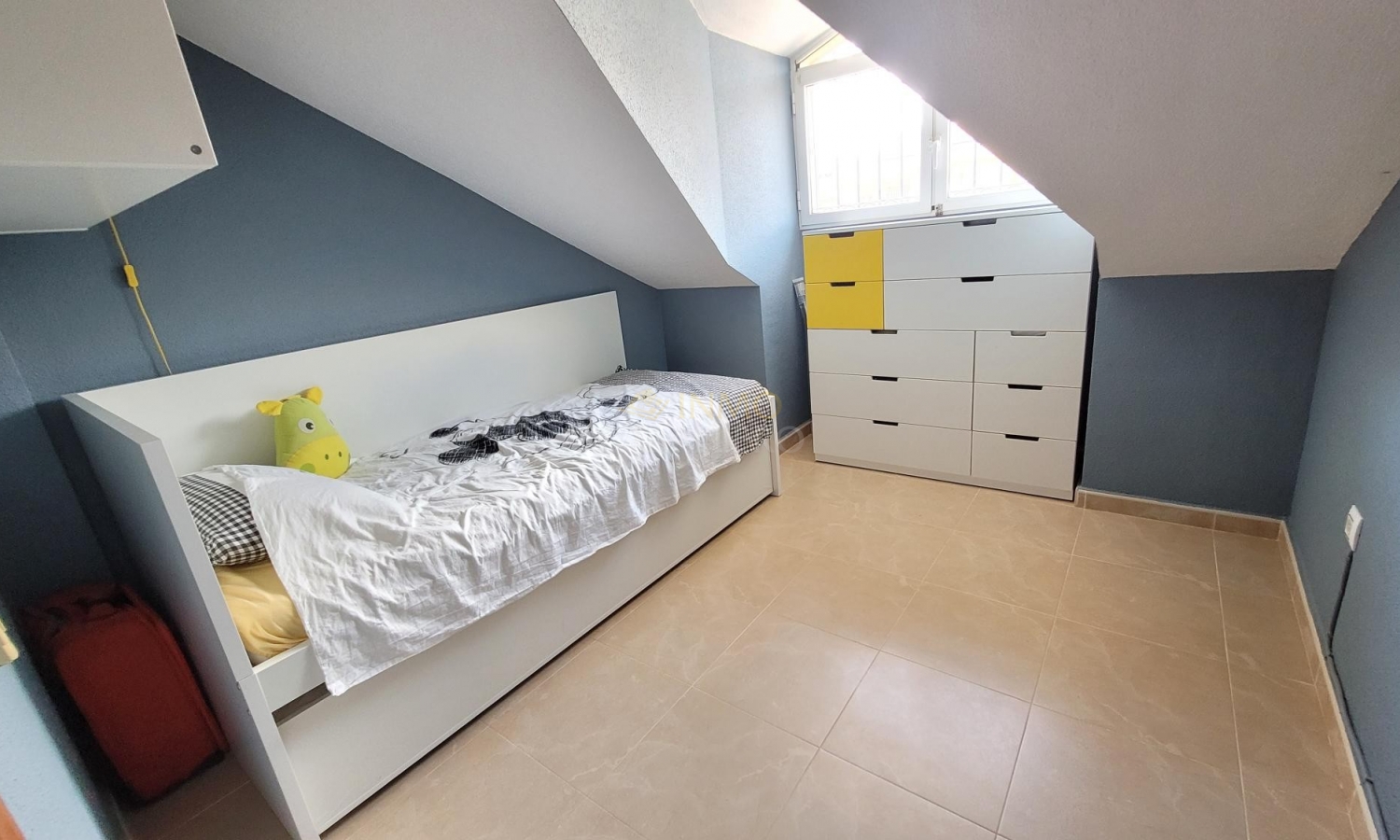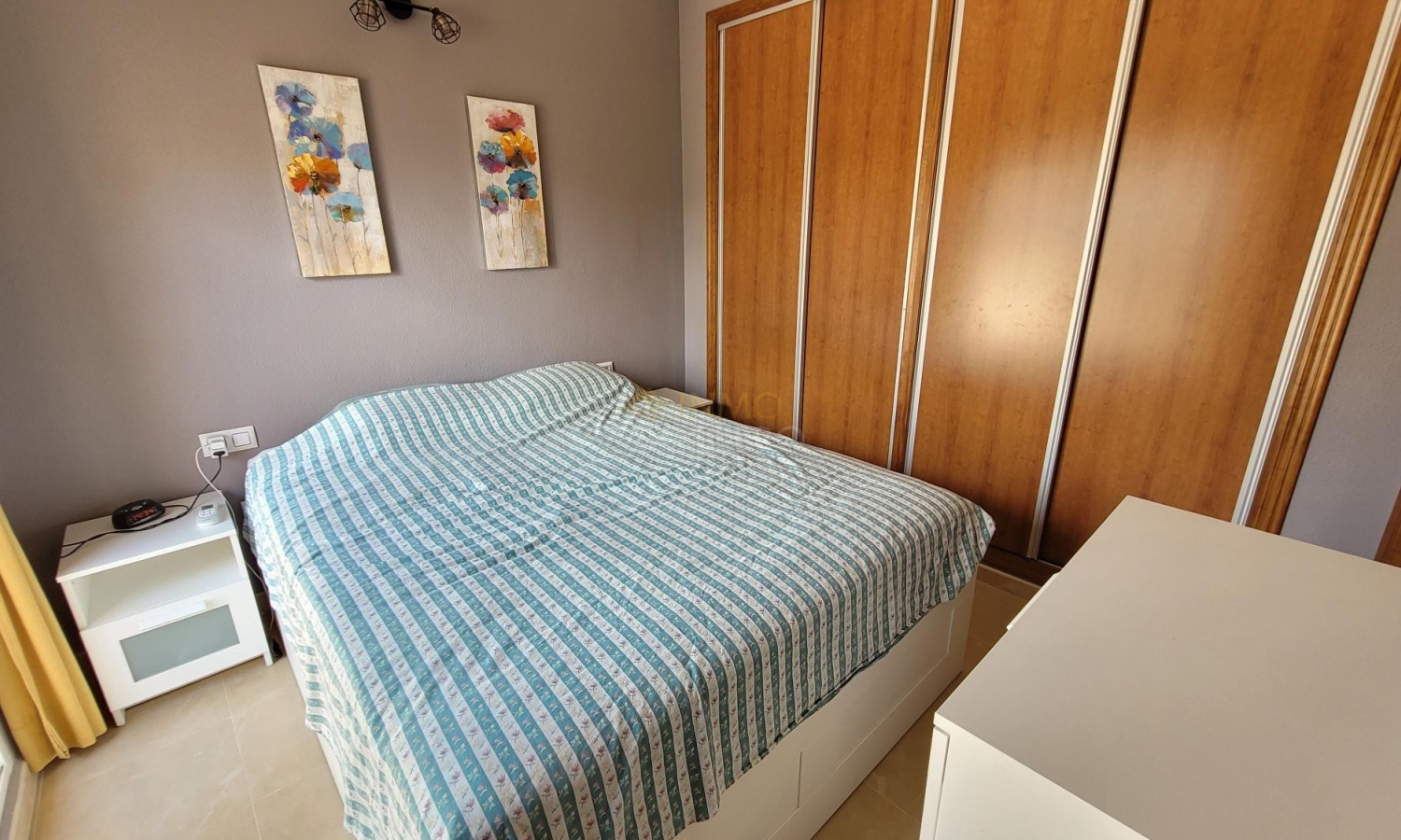 Vom Wohnzimmer aus führt eine Treppe ins Obergeschoss zu zwei Schlafzimmern. Eines davon, en suite, verfügt über ein eigenes Bad und direkten Zugang zu einer Sonnenterrasse mit herrlichem Blick auf den Park und den Gemeinschaftspool.