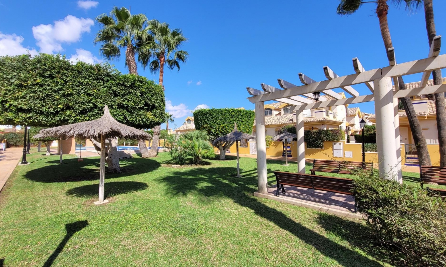 Schönes Haus mit 3 Schlafzimmern in Südlage mit Blick auf einen schönen Park mit Gemeinschaftspool.