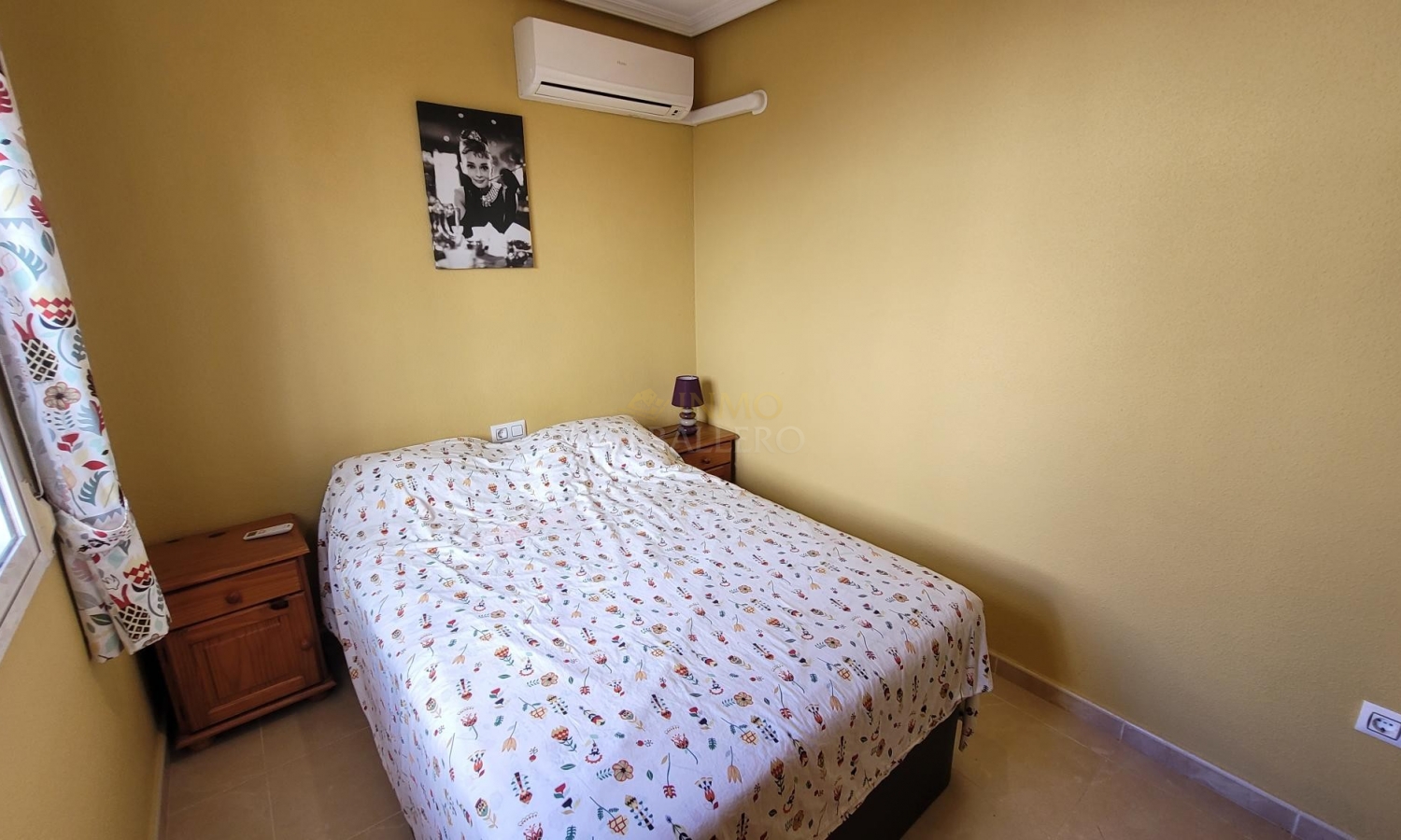Das Haus wird über eine Veranda betreten, die in ein schönes, geräumiges Wohn-/Esszimmer mit Klimaanlage und Pelletofen führt. Ein Flur führt zu einem Badezimmer, einem Doppelschlafzimmer mit Einbauschränken und einer voll ausgestatteten Küche mit Abstellraum und einem Erkerfenster, das auf eine 5 m² große Terrasse mit Waschmaschine führt.