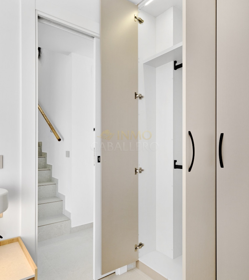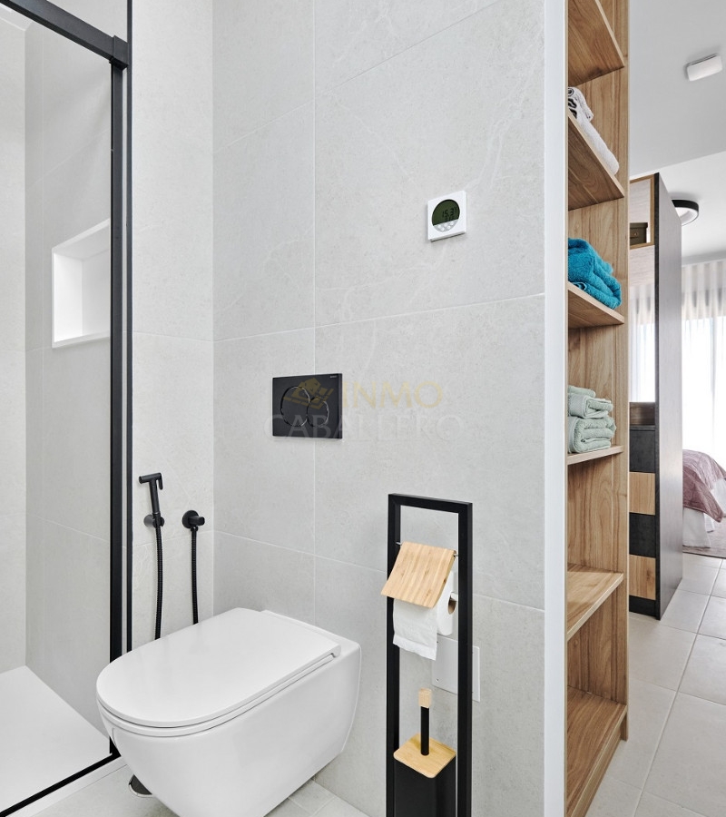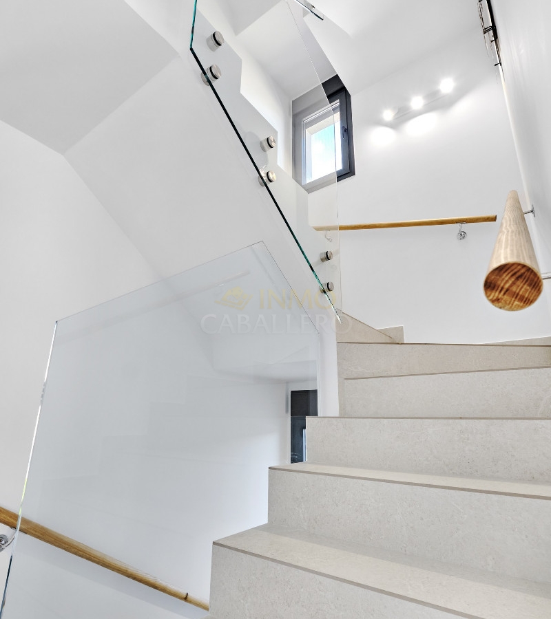 The upper floor offers two large bedrooms, one with a built-in wardrobe and the other with a dressing room and an en suite bathroom. On this floor there is a third bathroom and from both bedrooms there is direct access to a large sunny terrace with fantastic views of the surroundings and the Mediterranean coast.