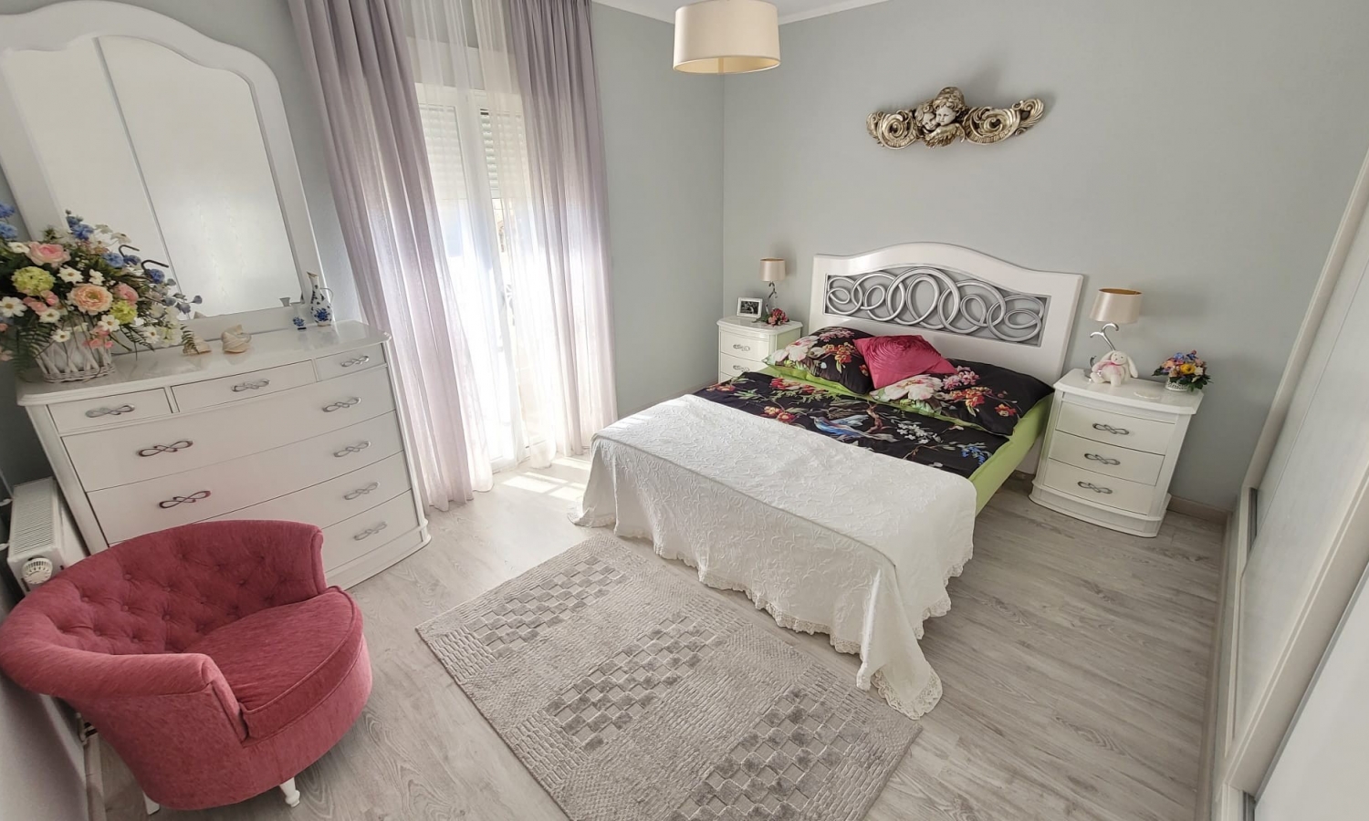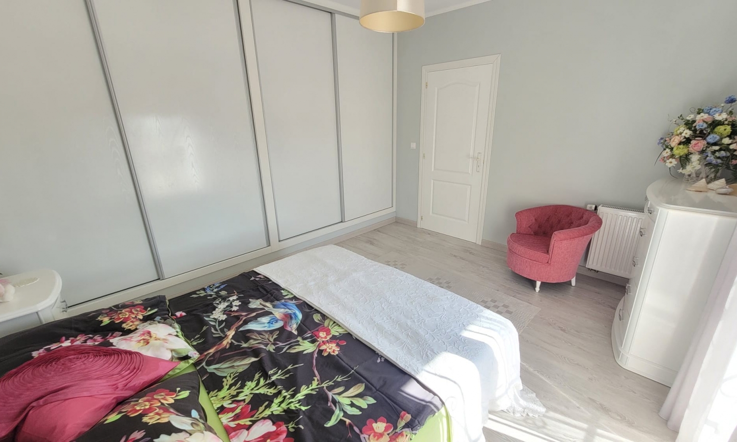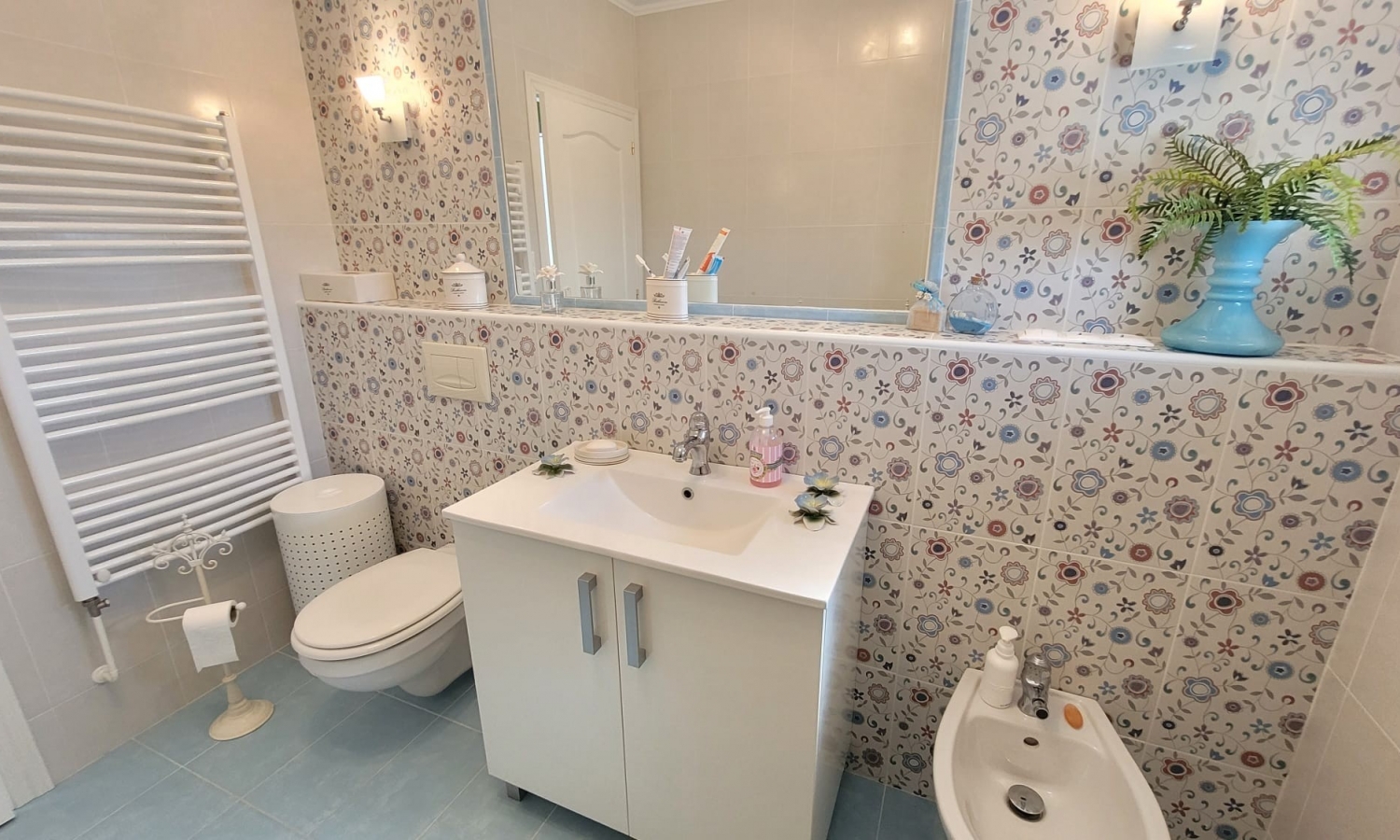 From the kitchen, a door leads to an internal staircase leading to the upper floor, also accessible from the outside and easily converted into a separate apartment. This floor includes a large bedroom with a balcony and built-in wardrobe, a bathroom, and a living-dining room with a balcony. This floor is pre-installed for heating.