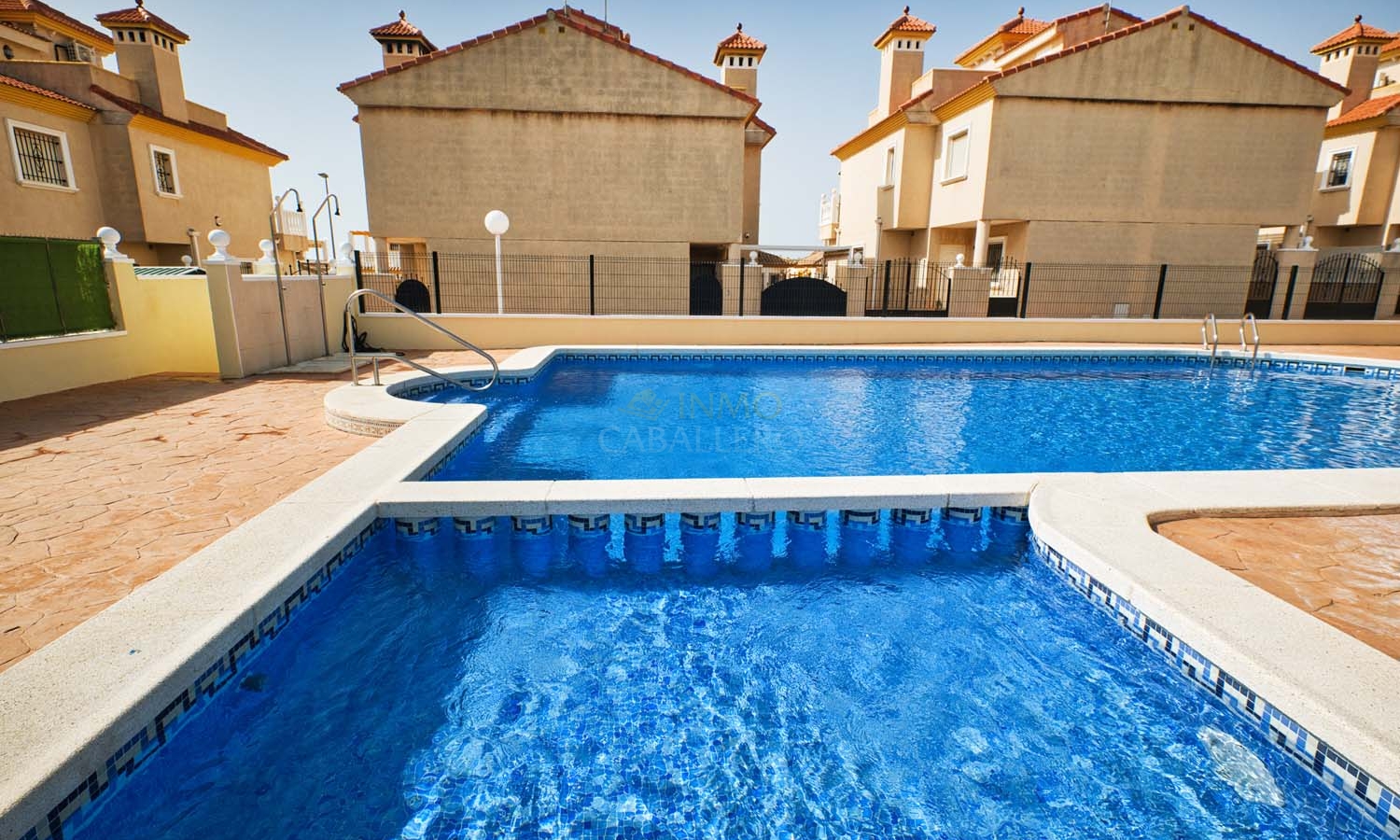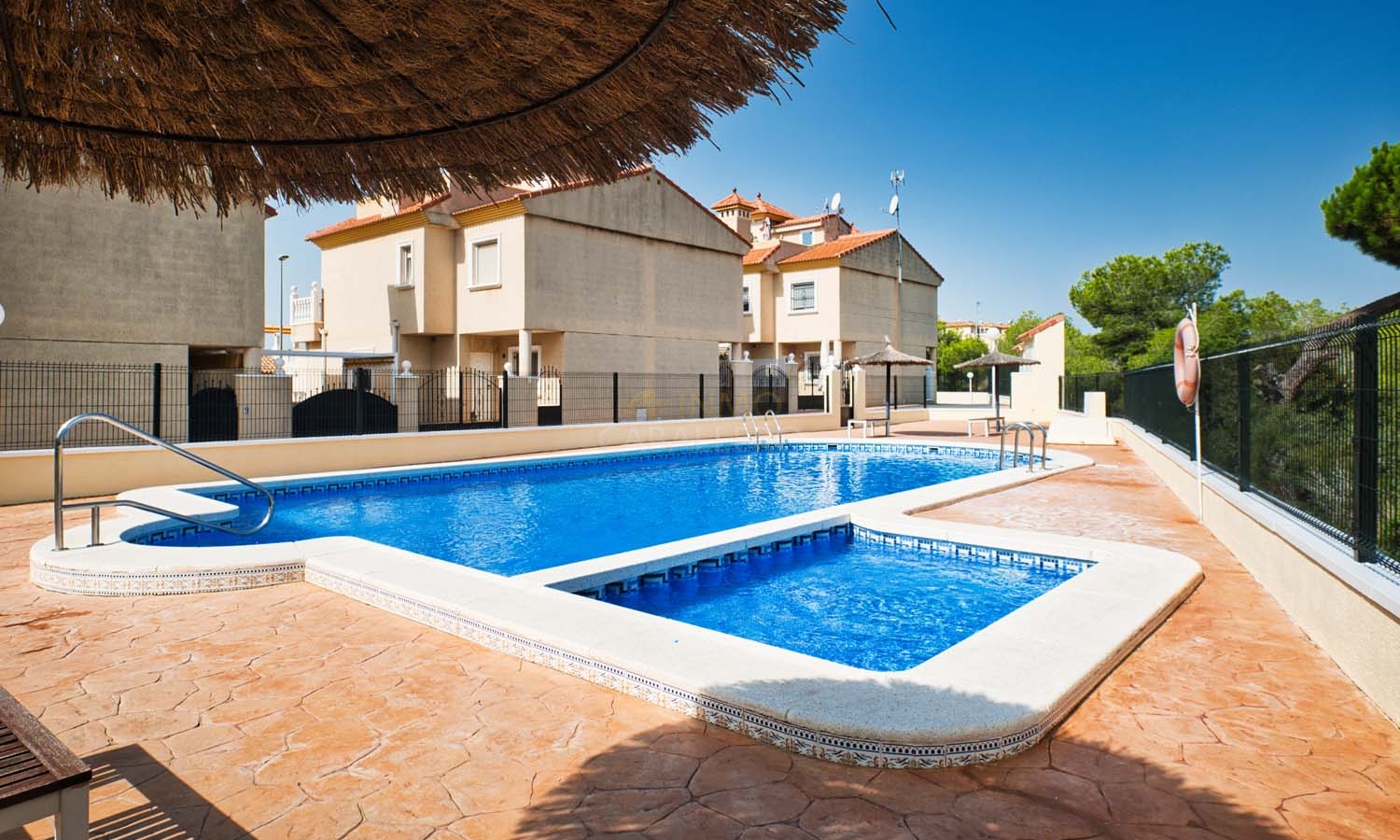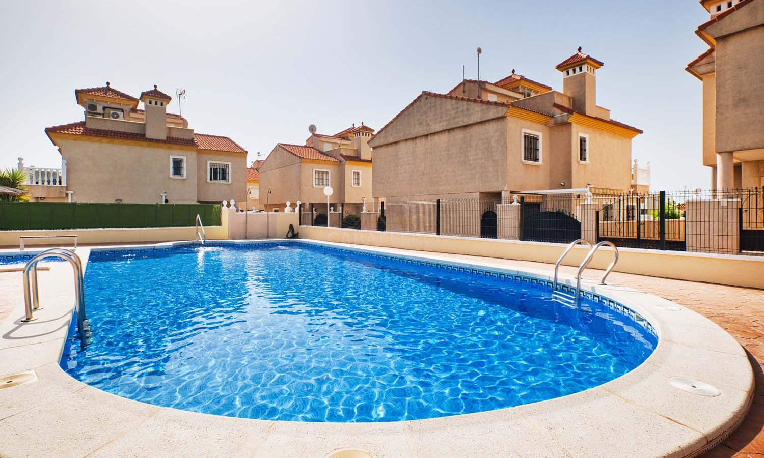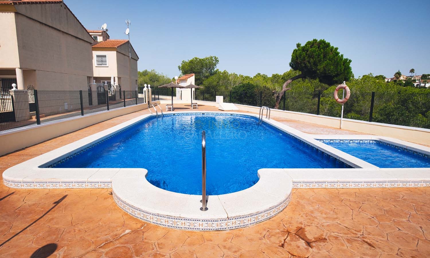 Great opportunity to purchase a 3 bedroom, 2 bathroom south facing semi detached villa located in a gated community surrounded by greenery and with a communal swimming pool. The property is located within walking distance to all amenities including two supermarkets and choice of bars and restaurants in the sought after village of PInar de Campoverde only 10km from the blue flag beaches of Torre de la Horadada and Mil Palmeras.