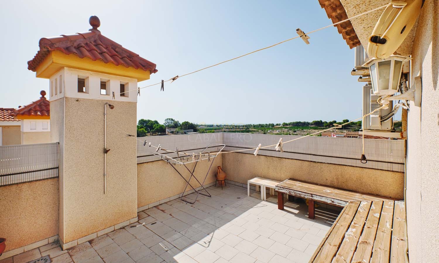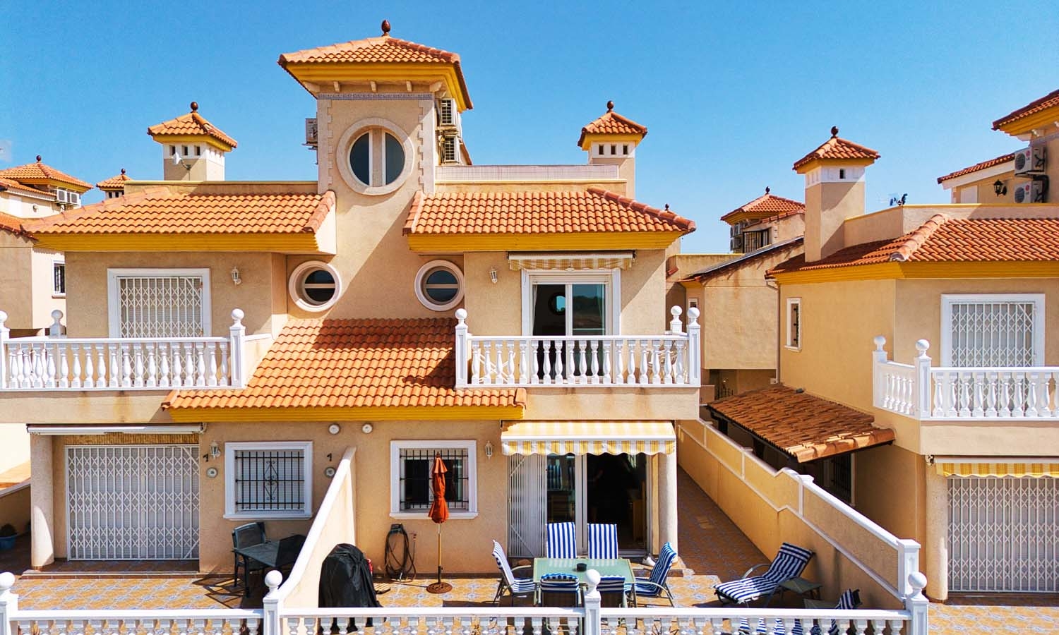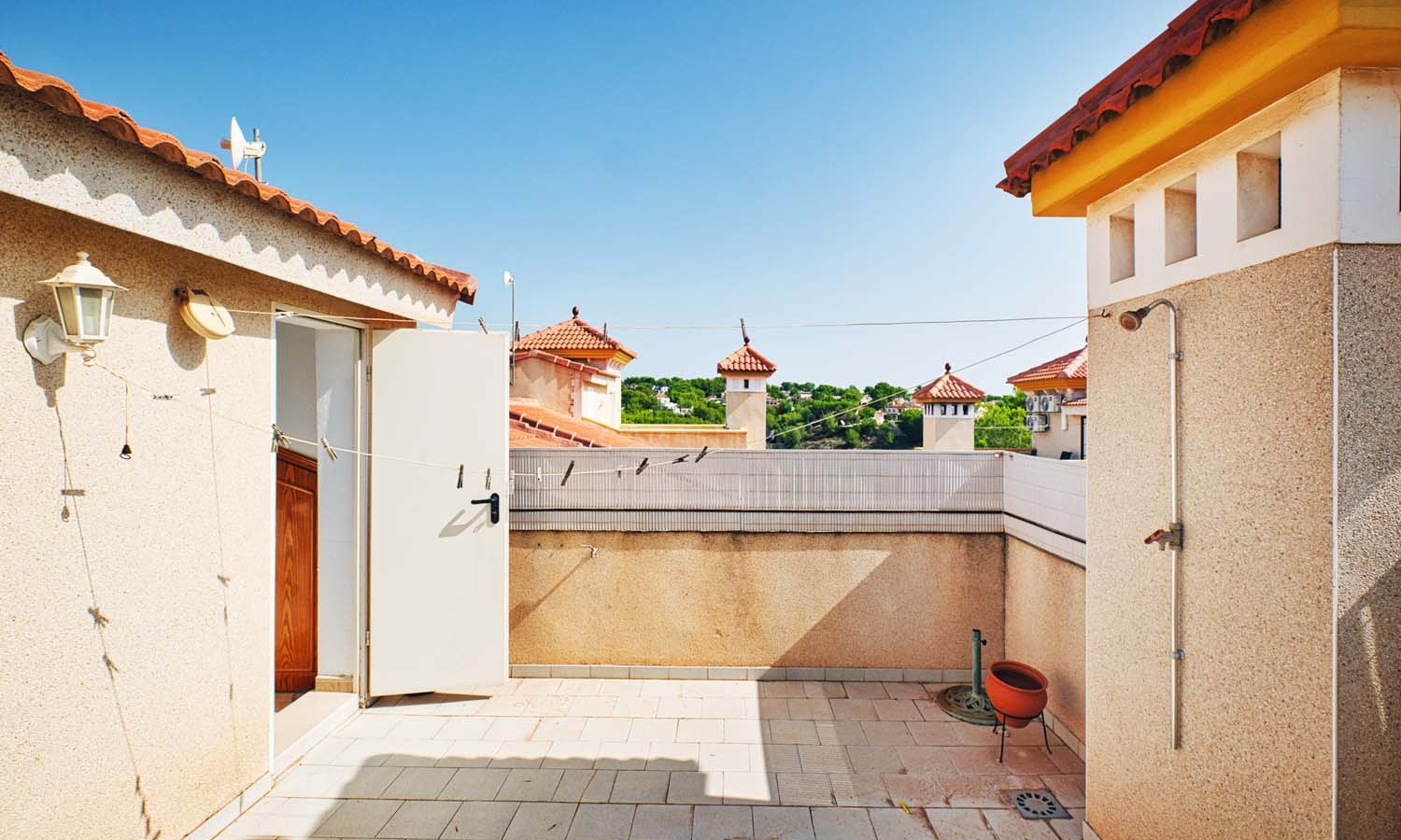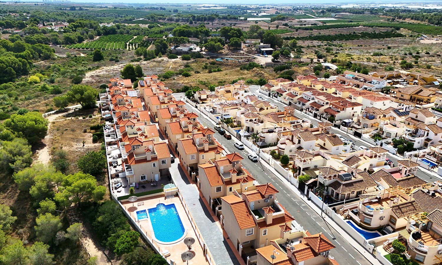 Great opportunity to purchase a 3 bedroom, 2 bathroom south facing semi detached villa located in a gated community surrounded by greenery and with a communal swimming pool. The property is located within walking distance to all amenities including two supermarkets and choice of bars and restaurants in the sought after village of PInar de Campoverde only 10km from the blue flag beaches of Torre de la Horadada and Mil Palmeras.