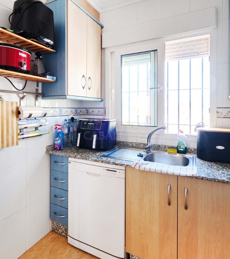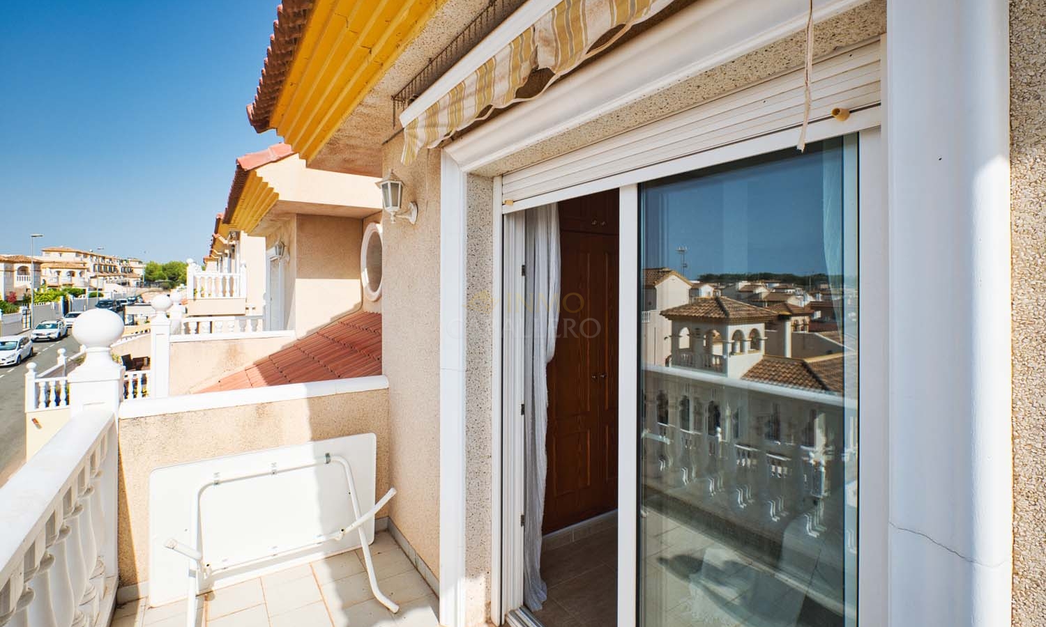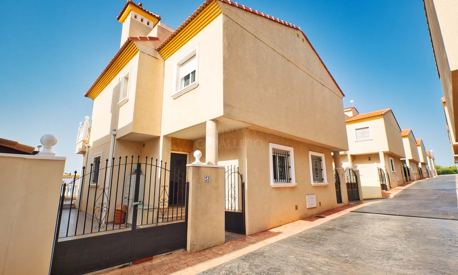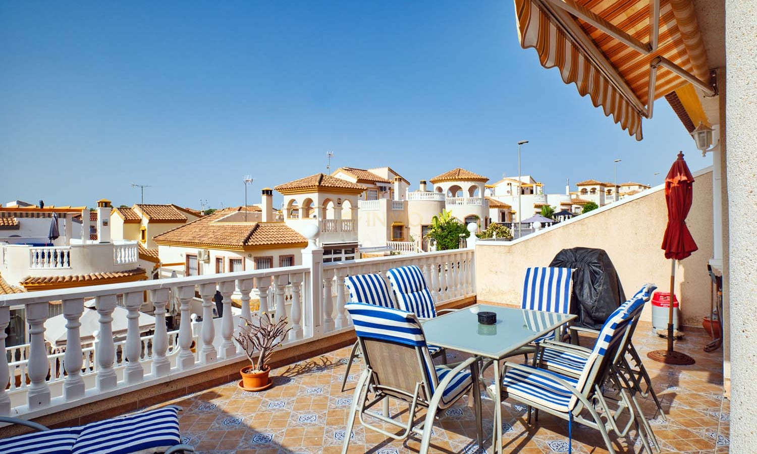 Great opportunity to purchase a 3 bedroom, 2 bathroom south facing semi detached villa located in a gated community surrounded by greenery and with a communal swimming pool. The property is located within walking distance to all amenities including two supermarkets and choice of bars and restaurants in the sought after village of PInar de Campoverde only 10km from the blue flag beaches of Torre de la Horadada and Mil Palmeras.
