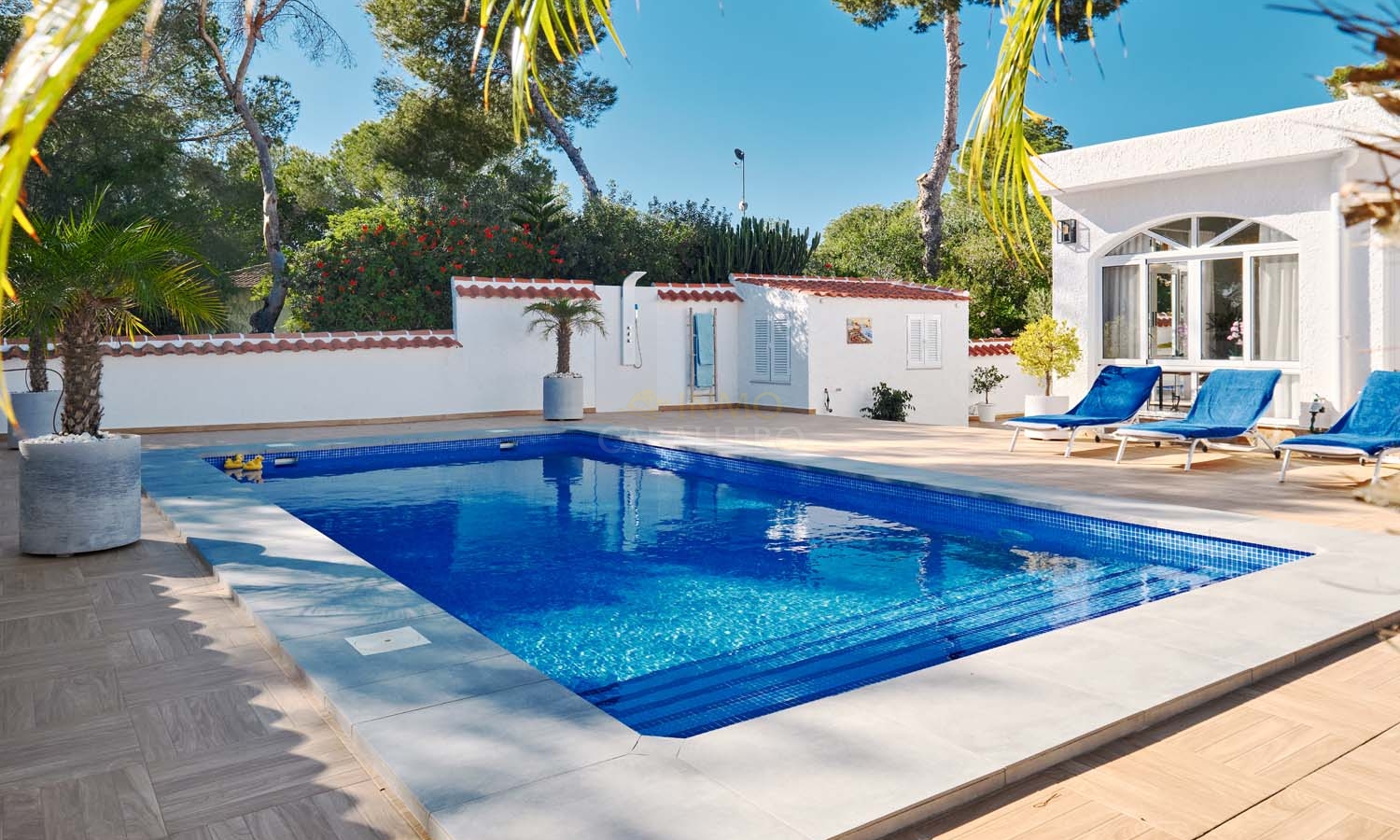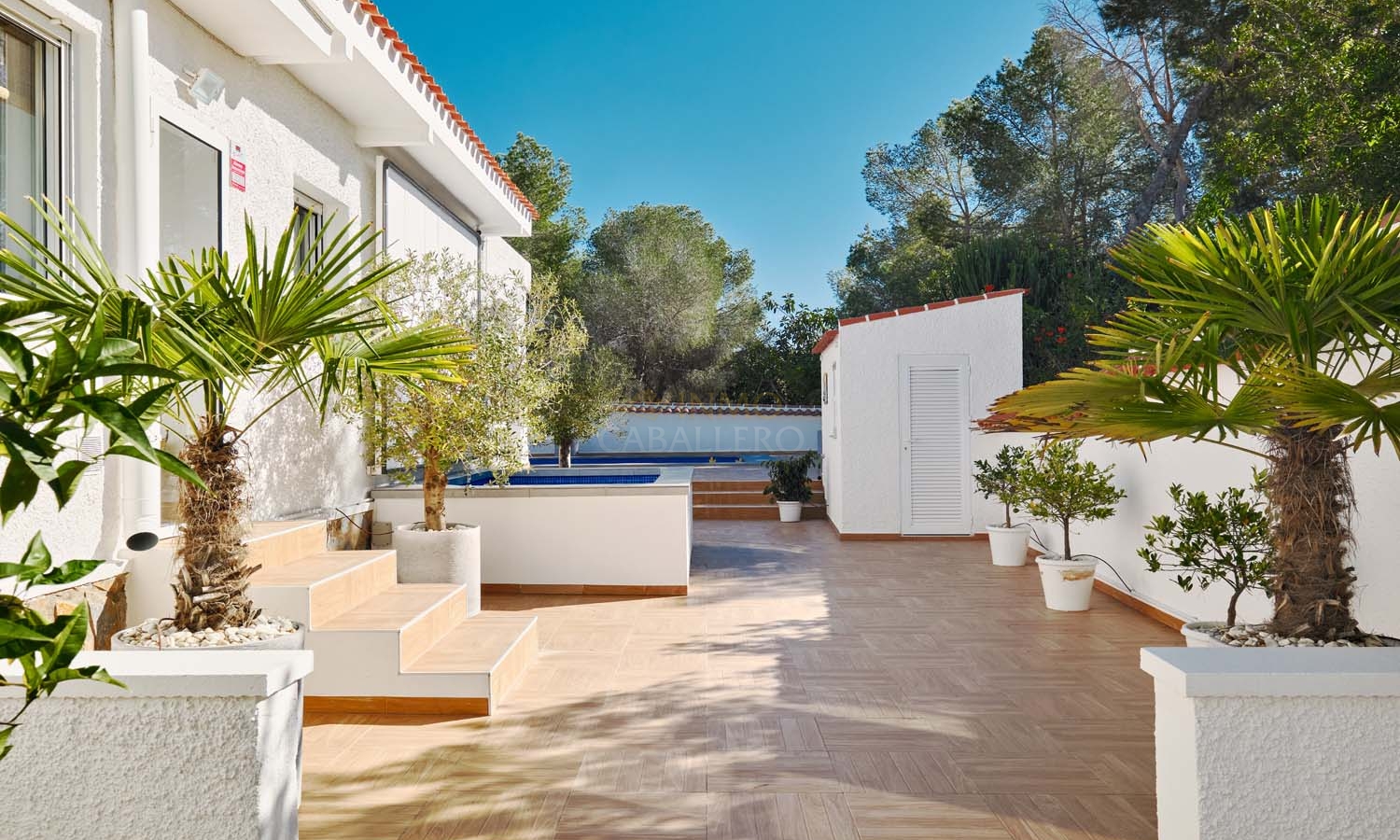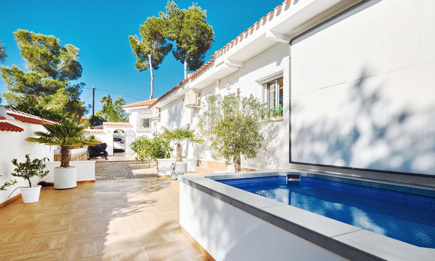 Located in the sought-after village of Pinar de Campoverde, this magnificent 3-bedroom, 2-bathroom villa is a true haven of peace. Nestled in a quiet cul-de-sac bordering the Rio Seco Natural Park, it offers complete privacy while being only 10 km from the Blue Flag beaches of Torre de la Horadada and Mil Palmeras.