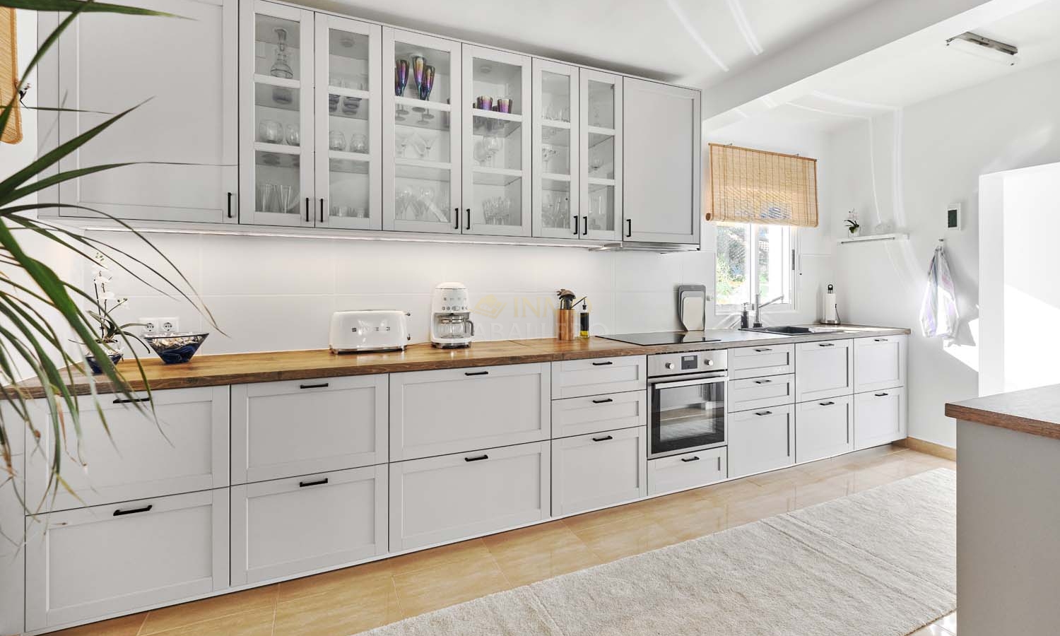 Kitchen: Fully renovated kitchen with ample storage and an adjacent utility room.