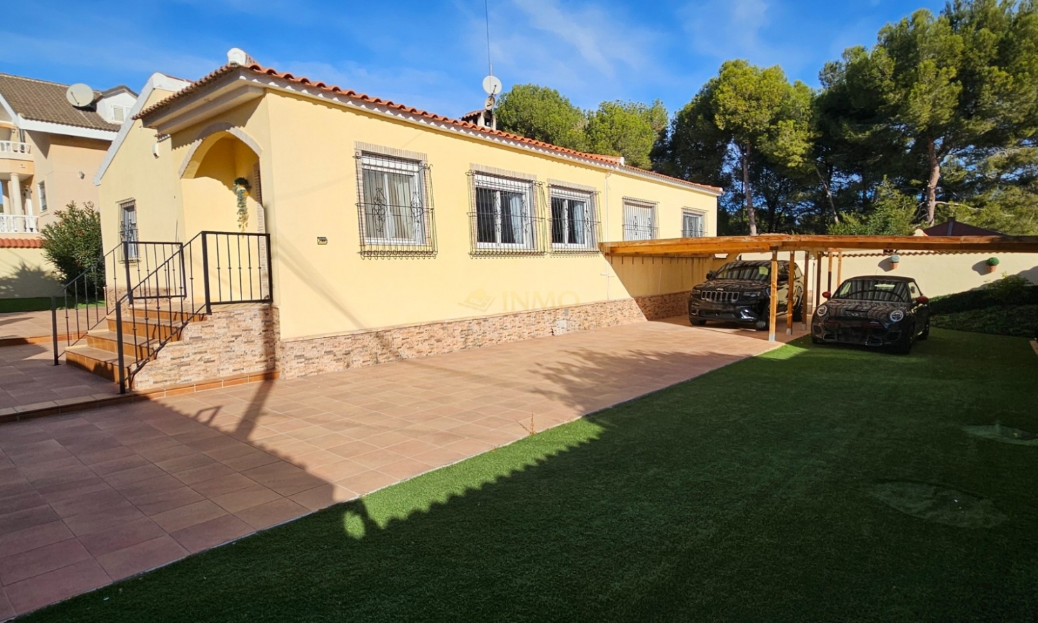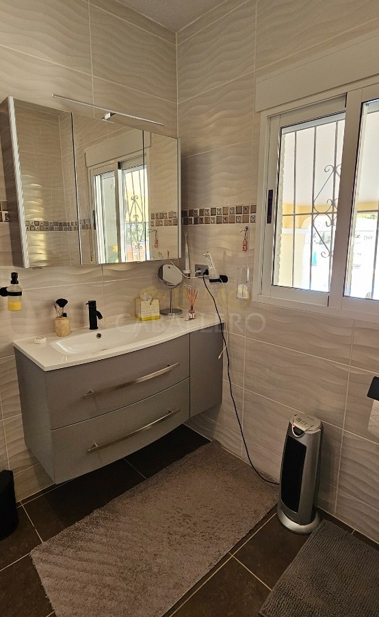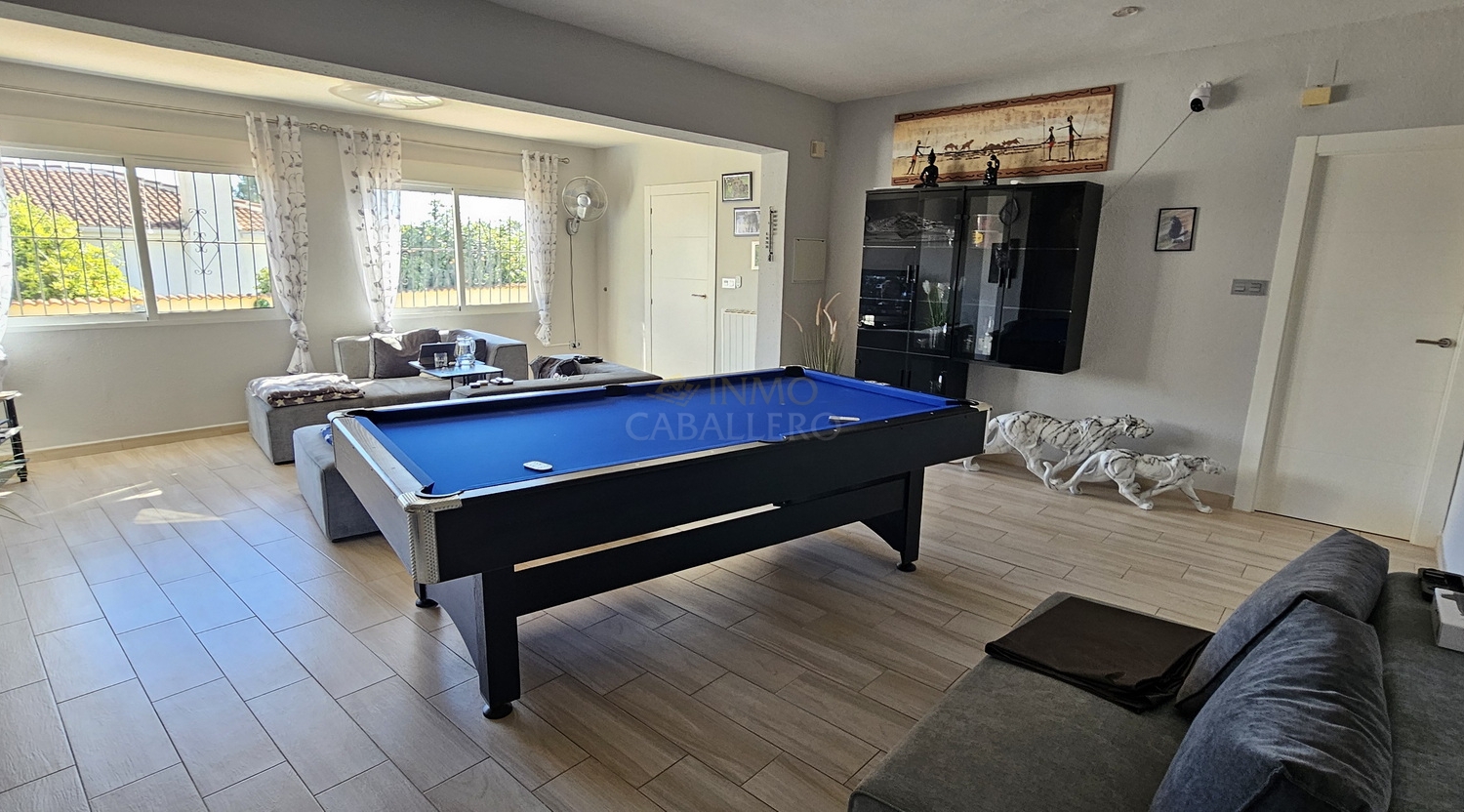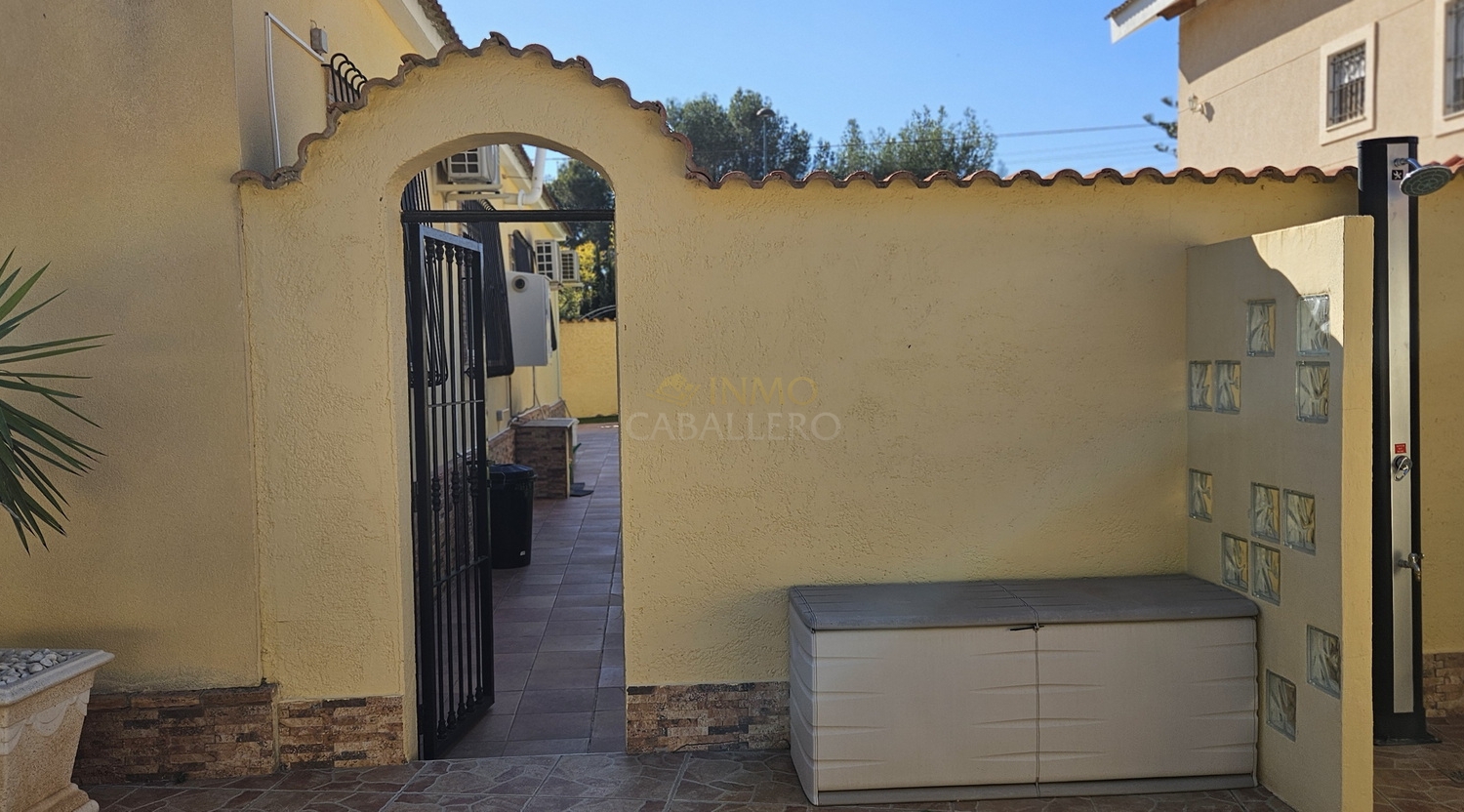 Single-storey villa with 175 m² of built area, set on a completely flat 864 m² plot. The property features a spacious and bright living room, dining area, fully equipped kitchen, four bedrooms and three bathrooms, two of them en suite.