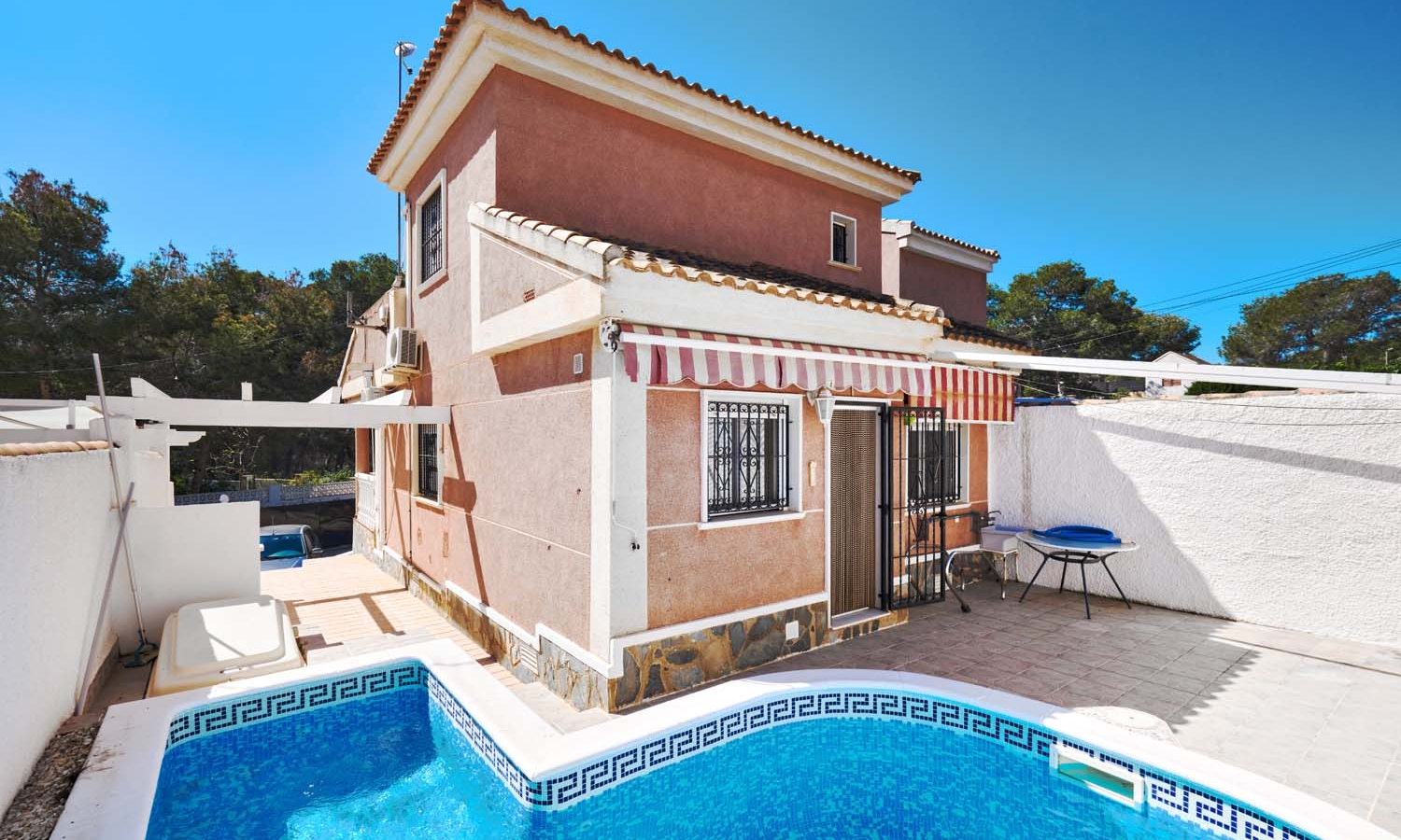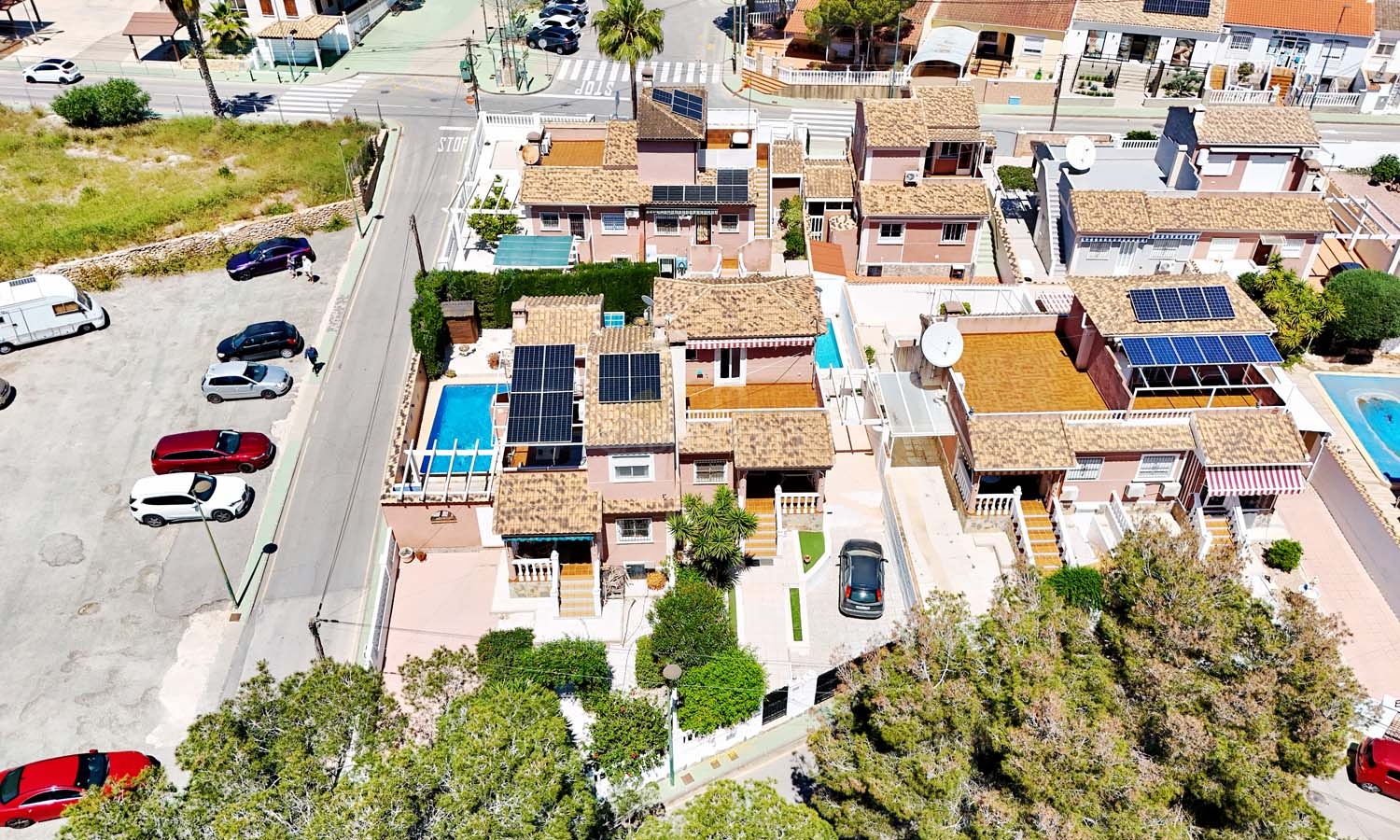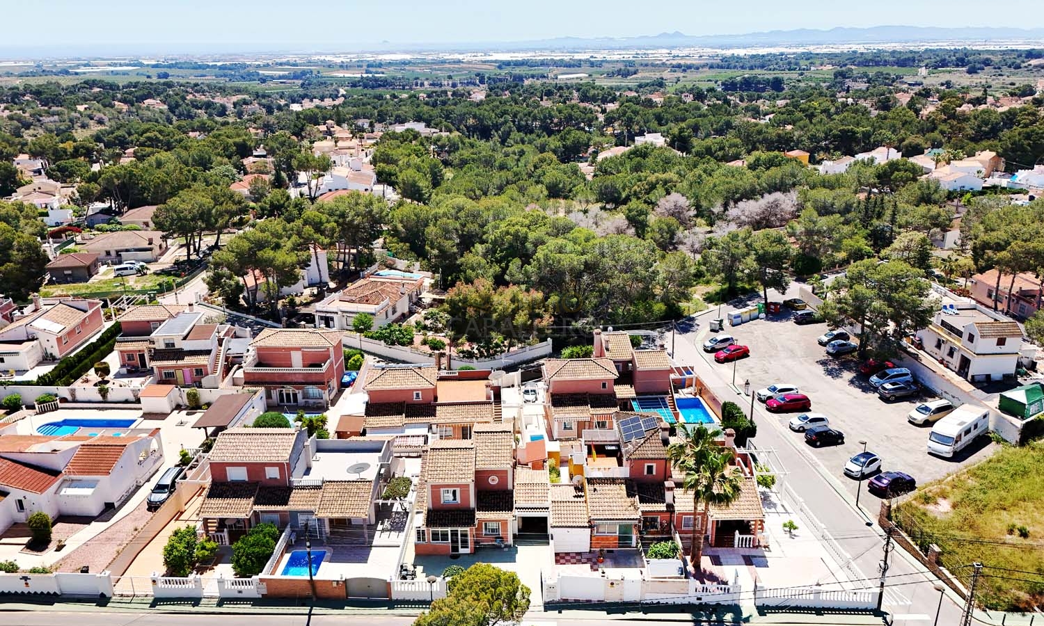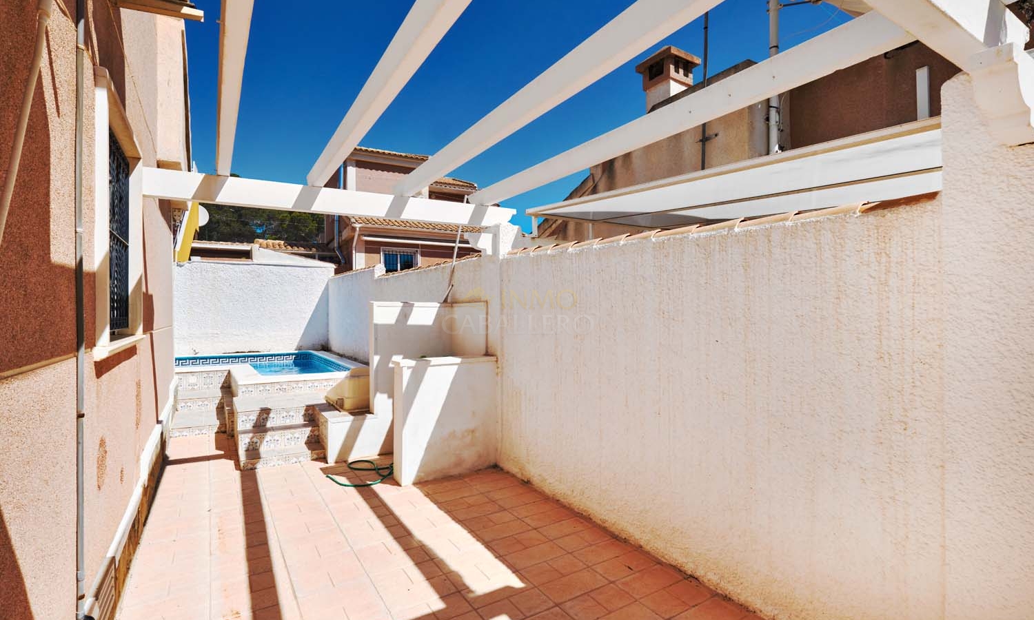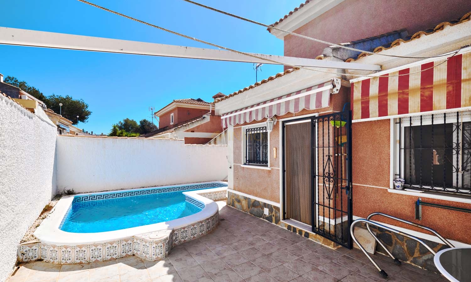 Rare opportunité d'acheter une villa jumelée de 2/3 chambres avec piscine privée située dans le centre du village de Pinar de Campoverde, avec un grand choix de bars et restaurants, centre de santé, pharmacie et bien plus encore à quelques minutes à pied de la propriété. La villa est également située à seulement 10 km des célèbres plages Pavillon Bleu de Torre de la Horadada et Mil Palmeras.