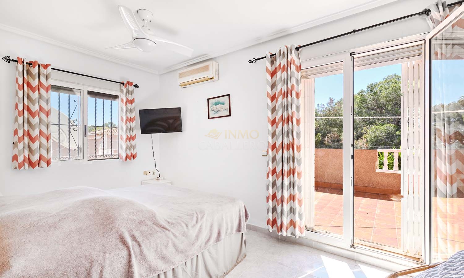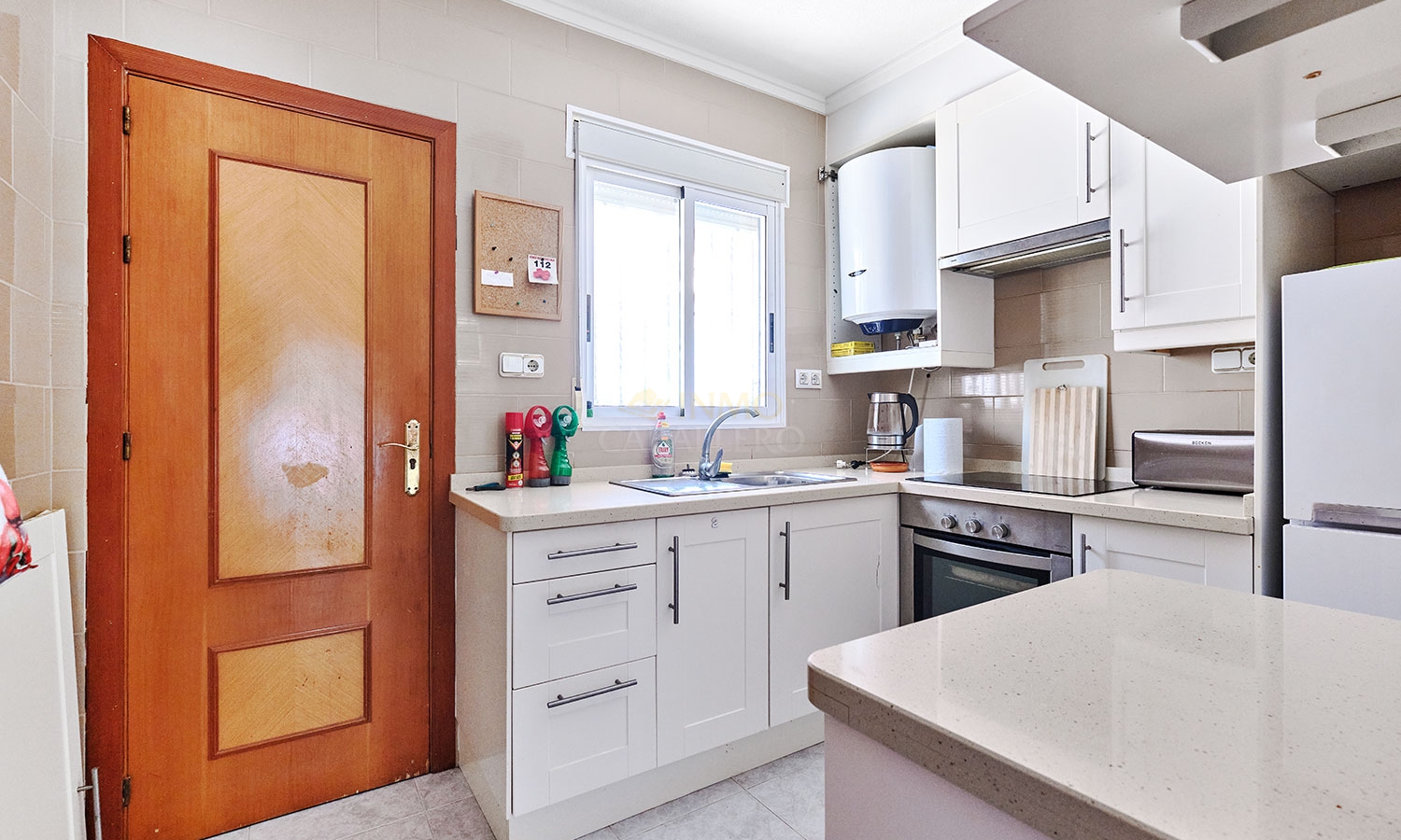 À l'arrière, à gauche, se trouve une chambre double au rez-de-chaussée avec placards intégrés et à côté se trouve une salle d´eau. La cuisine séparée est située à l'arrière de la villa, elle est bien présentée et il y a une porte arrière menant à une terrasse arrière et à la piscine.