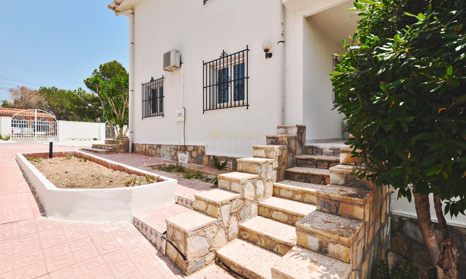 Dès l'entrée, vous découvrirez un joli jardin paysager agrémenté de plantes et d'arbres. Un double portail donne accès à un parking extérieur pouvant accueillir plusieurs voitures. La villa est actuellement divisée en deux espaces distincts, idéal pour recevoir famille et amis.