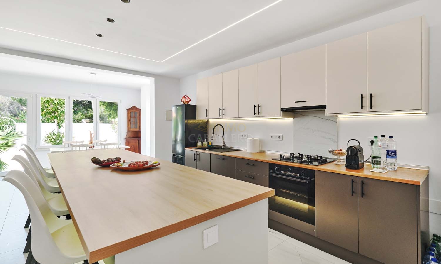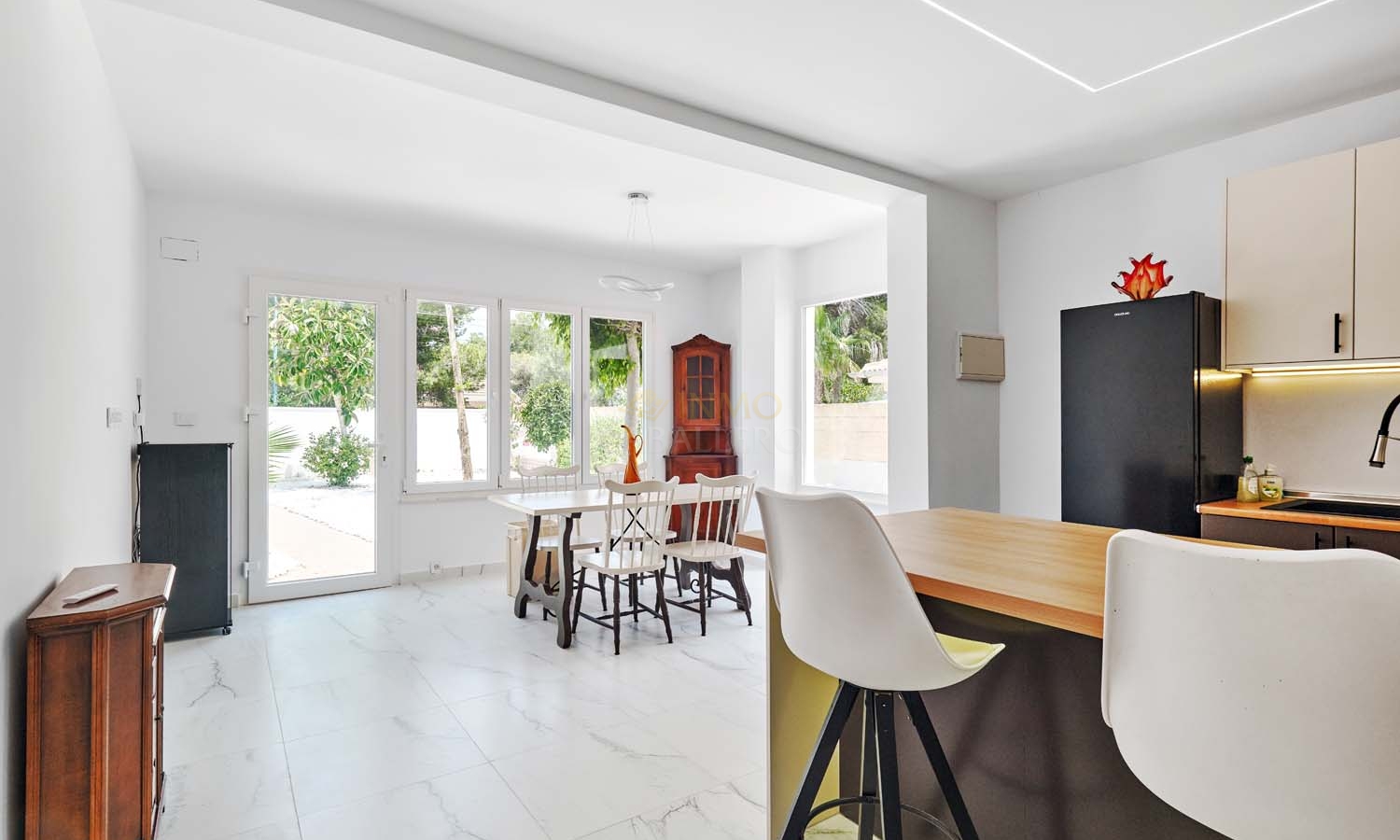 Le rez-de-chaussée de la villa a été entièrement rénové, avec notamment de nouvelles installations électriques et une nouvelle plomberie. L'aménagement des pièces pourrait être adapté aux besoins des nouveaux propriétaires, notamment par l'ajout d'un escalier intérieur reliant les deux niveaux. Des toilettes séparées se trouvent également au rez-de-chaussée, sur le côté de la villa, et sont accessibles par une porte extérieure.