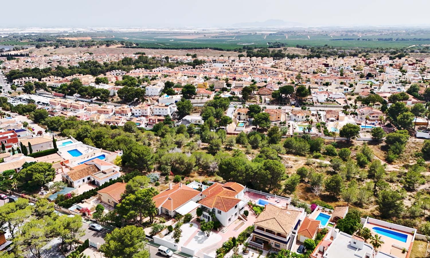 Superbe opportunité d'acquérir une grande villa familiale 6 chambres sur un terrain de 992 m² avec piscine privée, parking extérieur et vue imprenable sur la campagne environnante. Située dans le village prisé de Pinar de Campoverde, à quelques pas de toutes les commodités, cette spacieuse villa se trouve à seulement 10 km des célèbres plages Pavillon Bleu de Mil Palmeras et Torre de la Horadada.