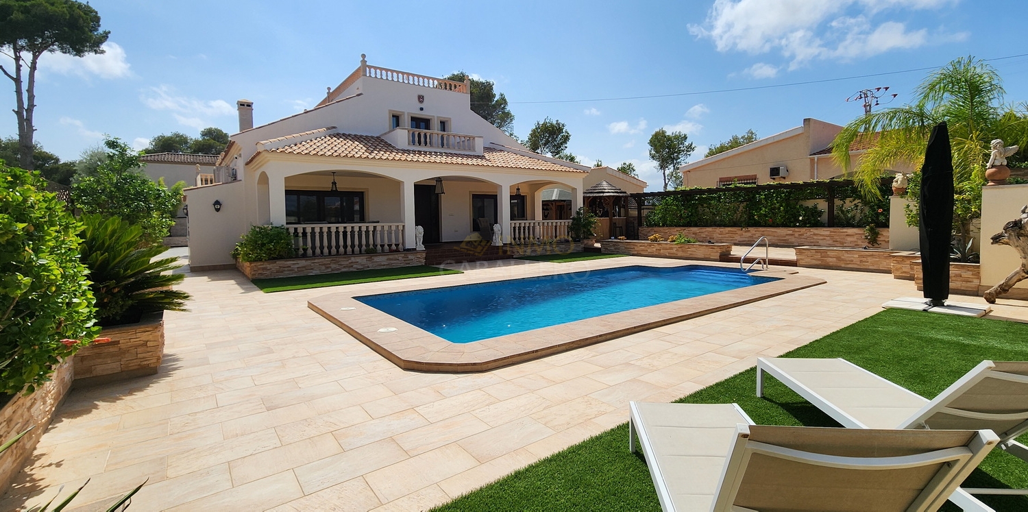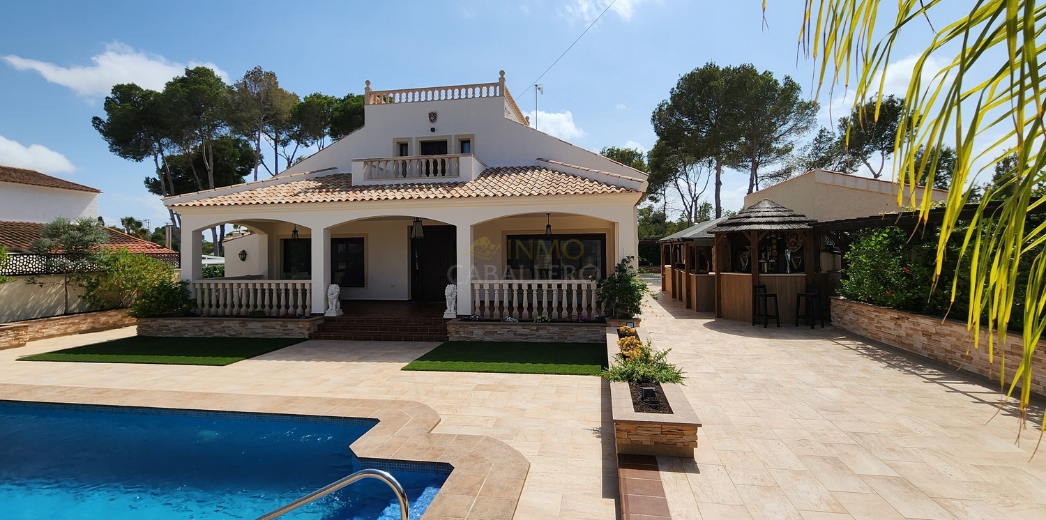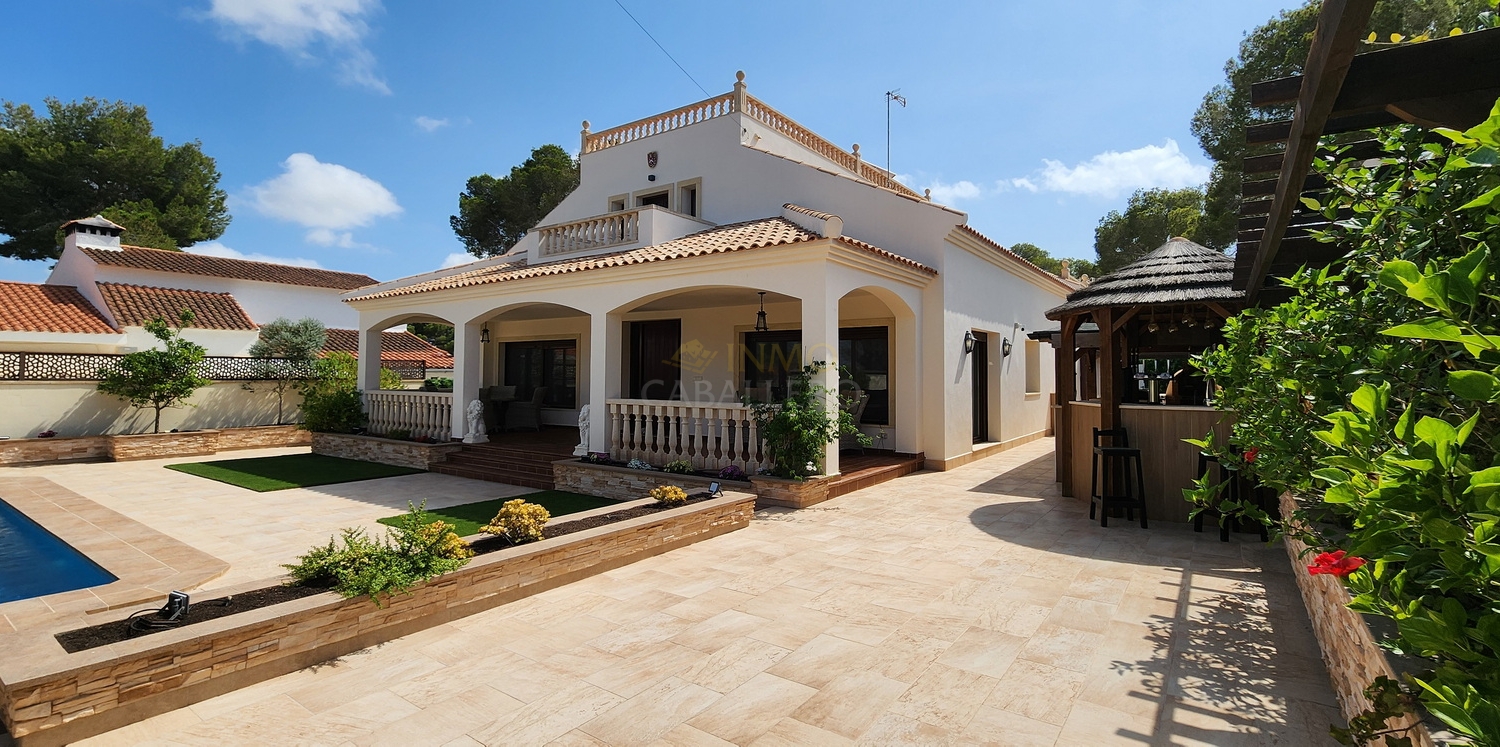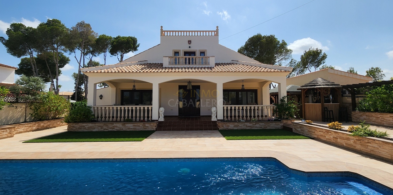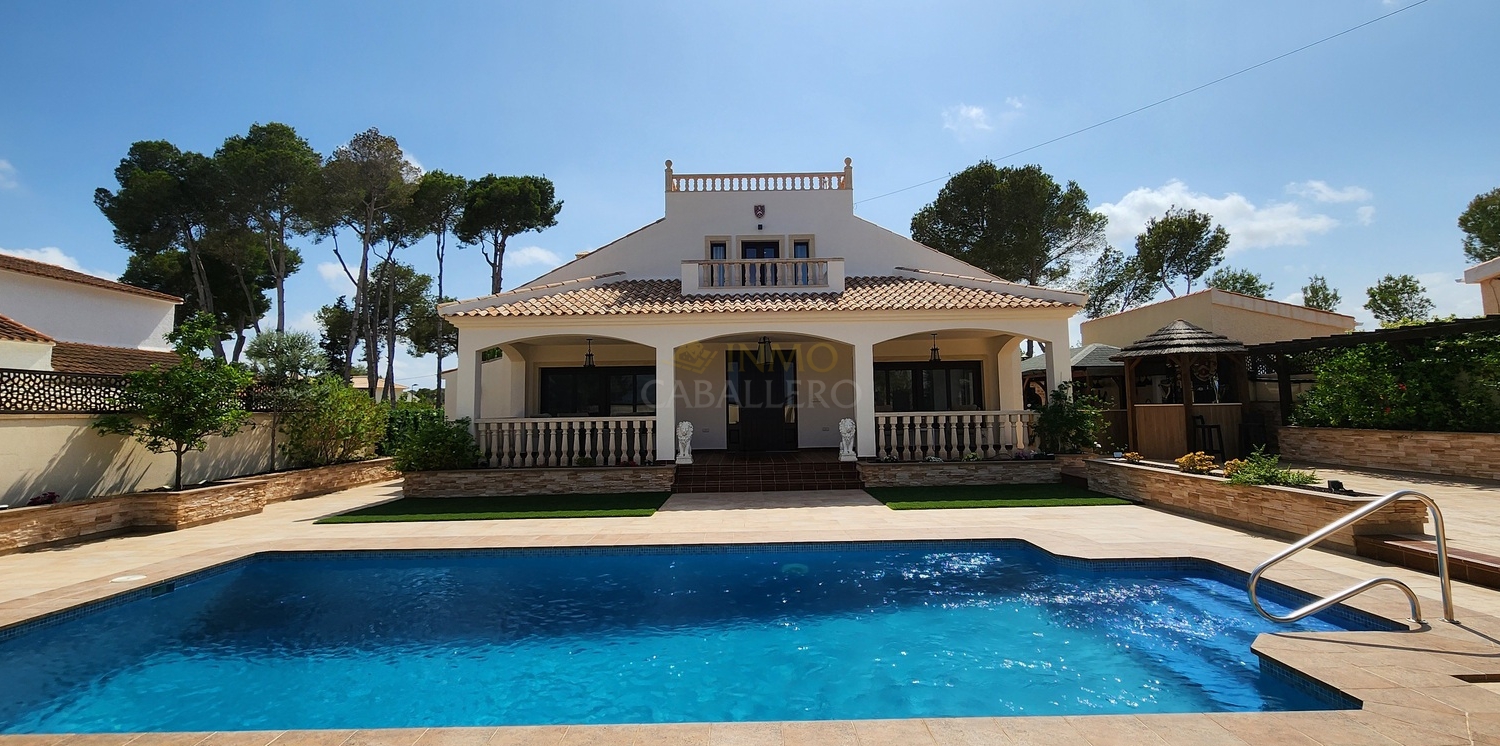 Située dans une rue calme et privée de Pinar de Campoverde, à seulement 3 minutes à pied du centre, cette magnifique villa rénovée de 5 chambres.