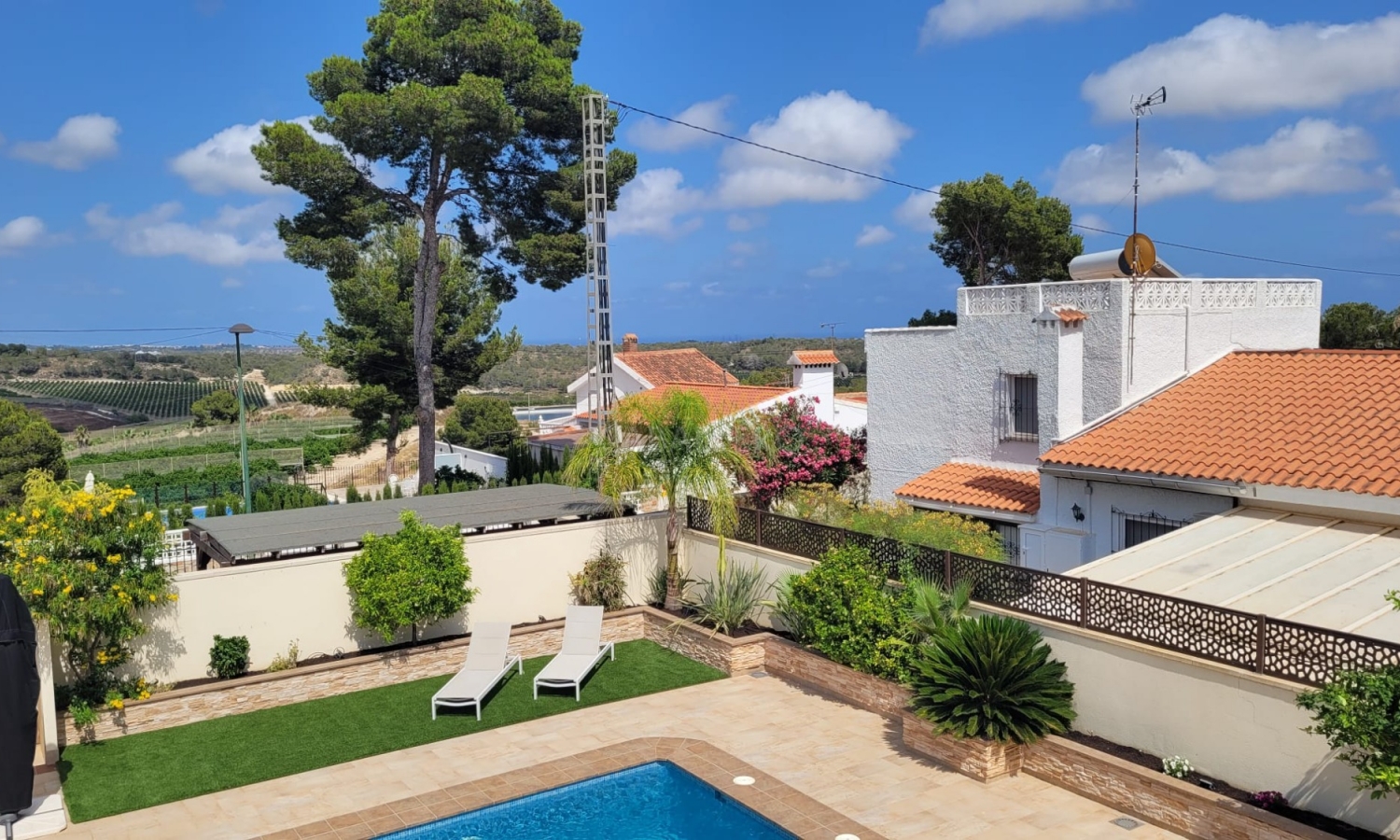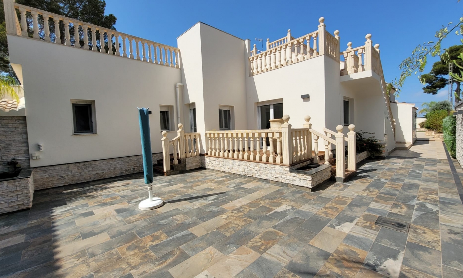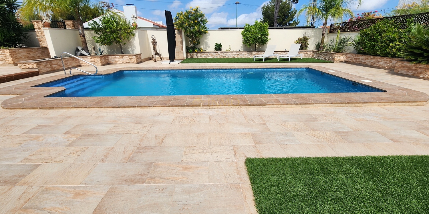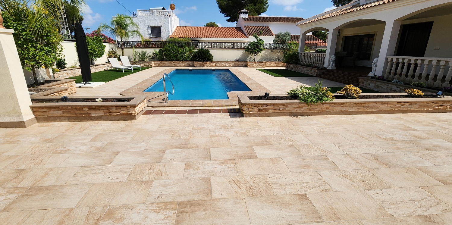 Située dans une rue calme et privée de Pinar de Campoverde, à seulement 3 minutes à pied du centre, cette magnifique villa rénovée de 5 chambres.