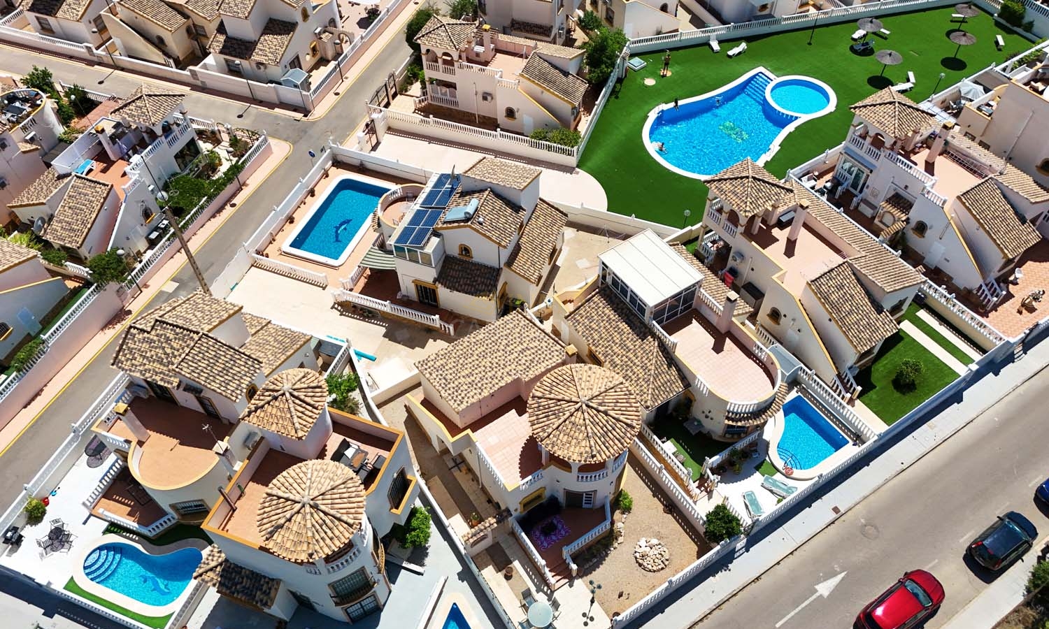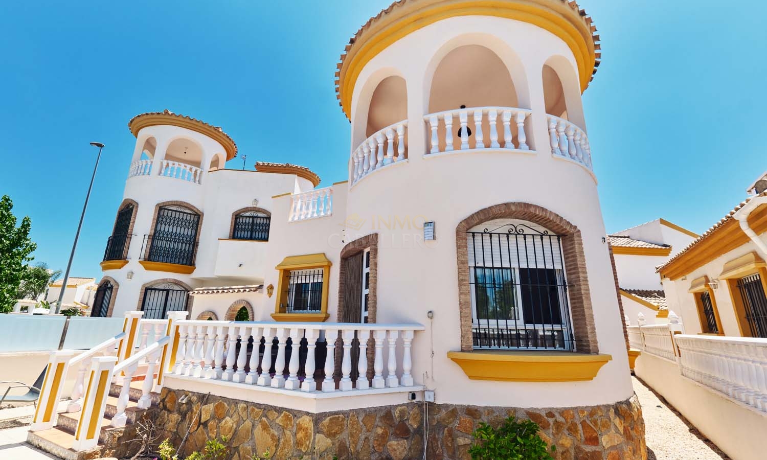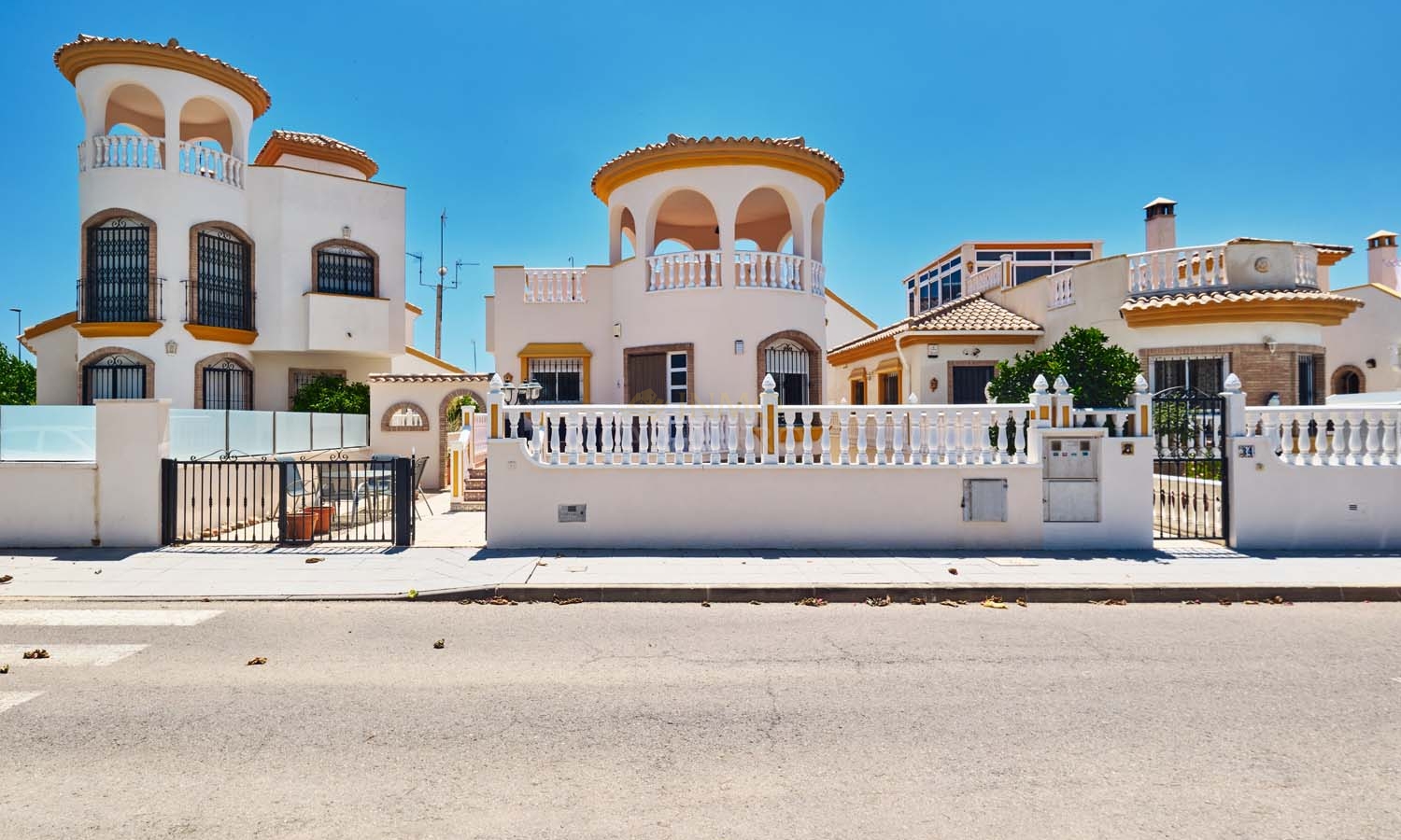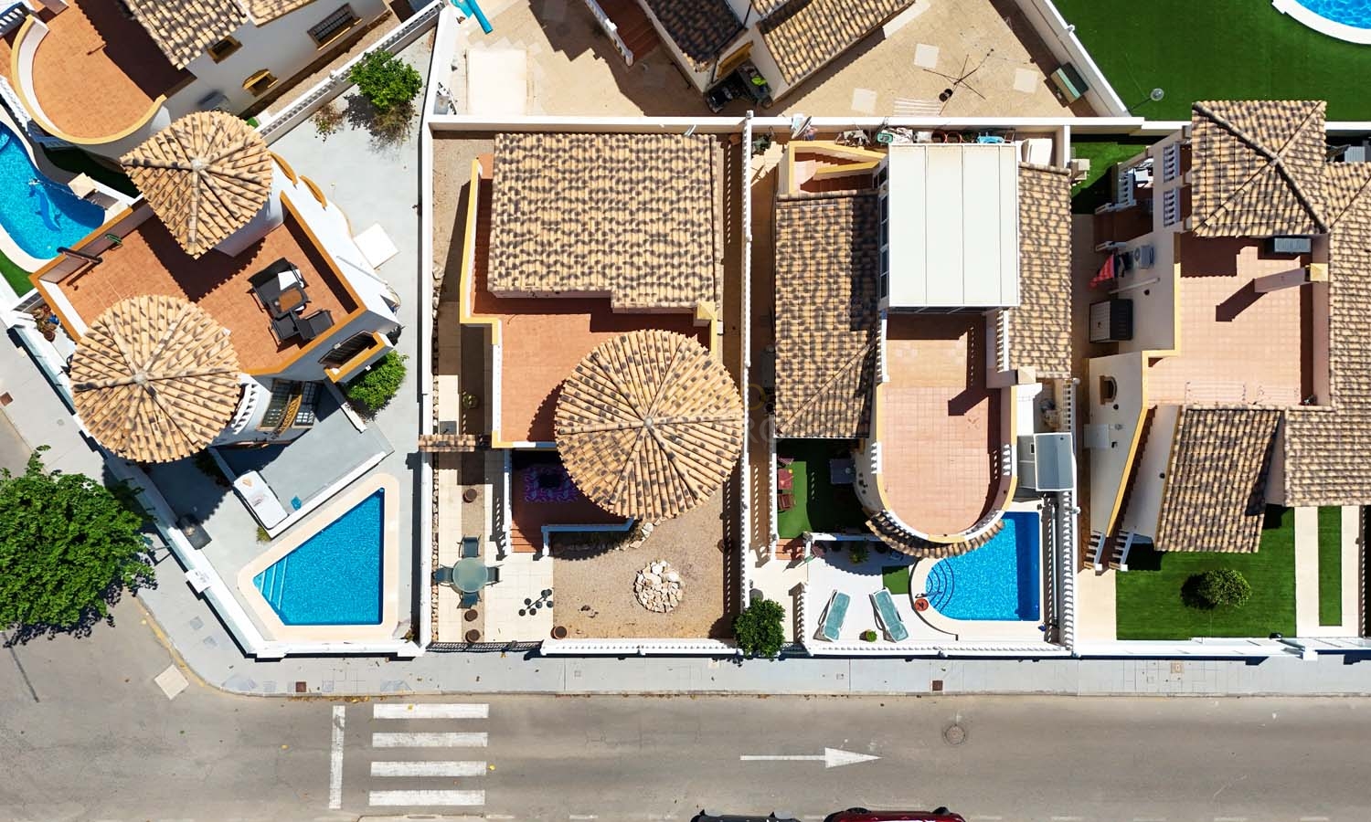 Sur le côté de la villa se trouve un débarras et, à l'arrière, un escalier extérieur mène à un grand solarium, dont la moitié est ombragée, idéale pendant les mois les plus chauds. Ce solarium privé dispose d'un second débarras et d'une douche, un espace idéal pour profiter de la vue imprenable.