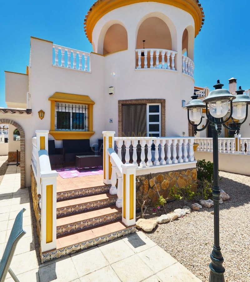 Superbe opportunité d'acquérir une villa individuelle impeccable de 2 chambres et 2 salles de bains, offrant une vue imprenable sur la campagne et un accès à une grande piscine commune, dans le joli village verdoyant de Pinar de Campoverde. Située sur un terrain facile d'entretien, cette fabuleuse villa se trouve à seulement cinq minutes à pied des commodités et à seulement 10 km des célèbres plages Pavillon Bleu de Torre de la Horadada et Mil Palmeras.