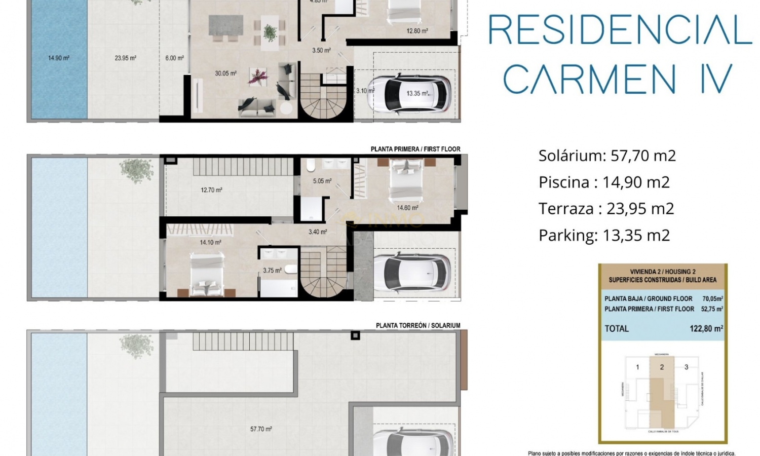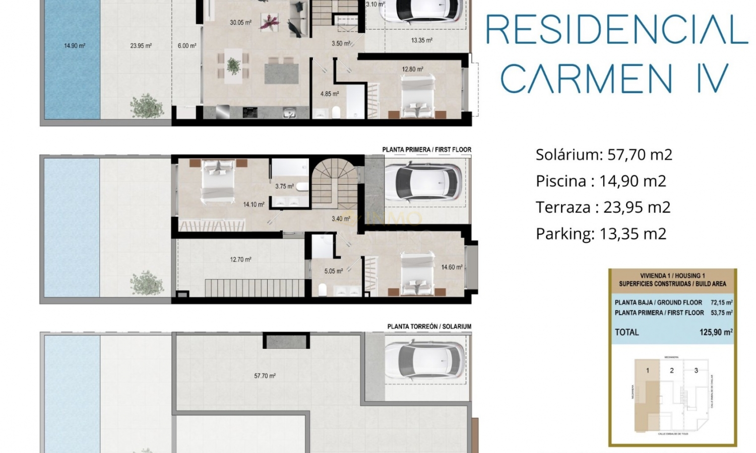 Residencial Carmen IV es un complejo residencial formado por 3 amplias casas adosadas, cada una de ellas con piscina privada, terraza, parking y solárium.
