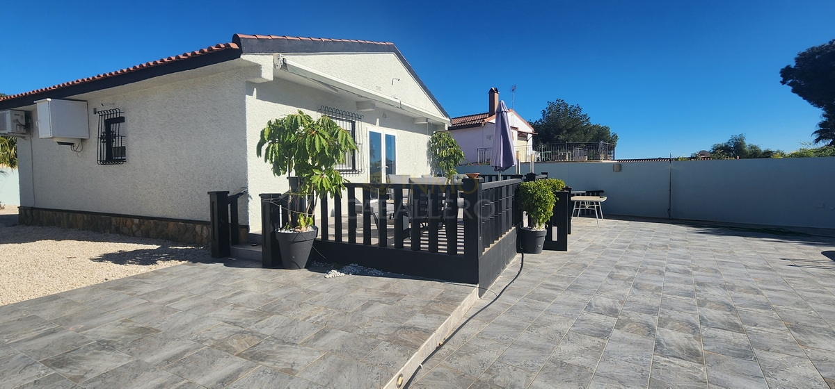 Chalet de una sola planta situado en una parcela completamente llana. La vivienda se distribuye en recibidor, cocina abierta, amplio salón-comedor equipado con aire acondicionado, dos dormitorios con armarios empotrados (uno de ellos también con aire acondicionado) y cuarto de baño.