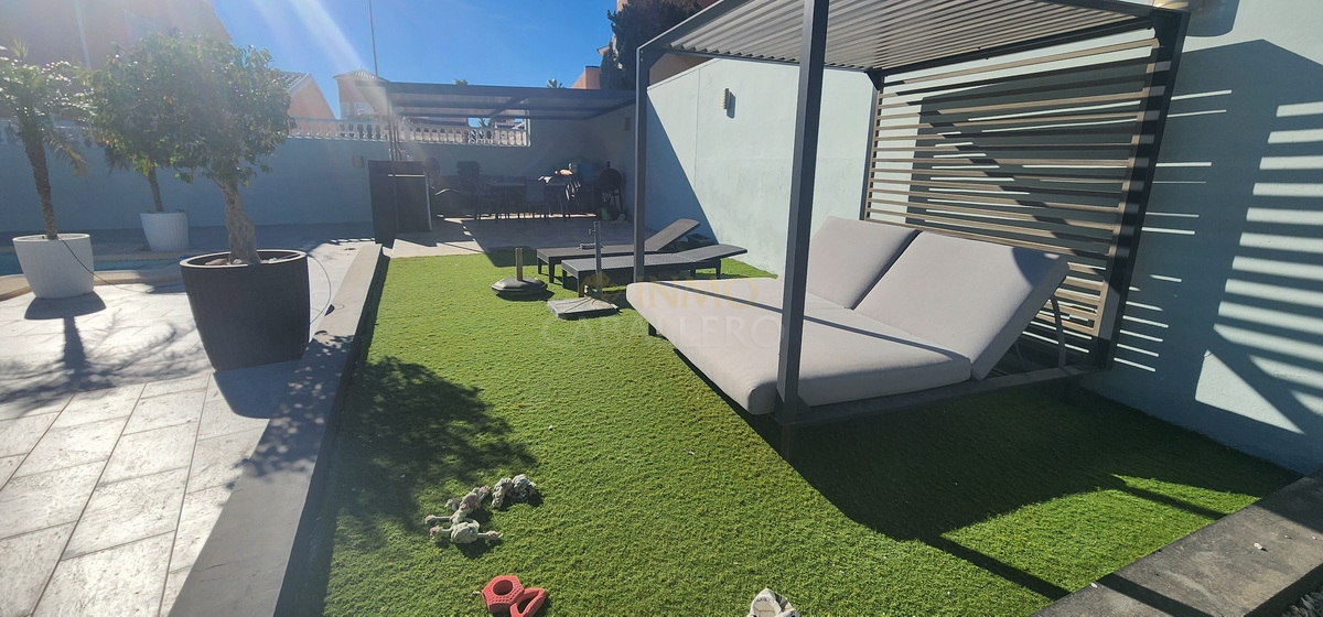 En la parcela se encuentra un jardín de bajo mantenimiento, aparcamiento para varios vehículos, una piscina con amplia terraza y una zona de barbacoa.