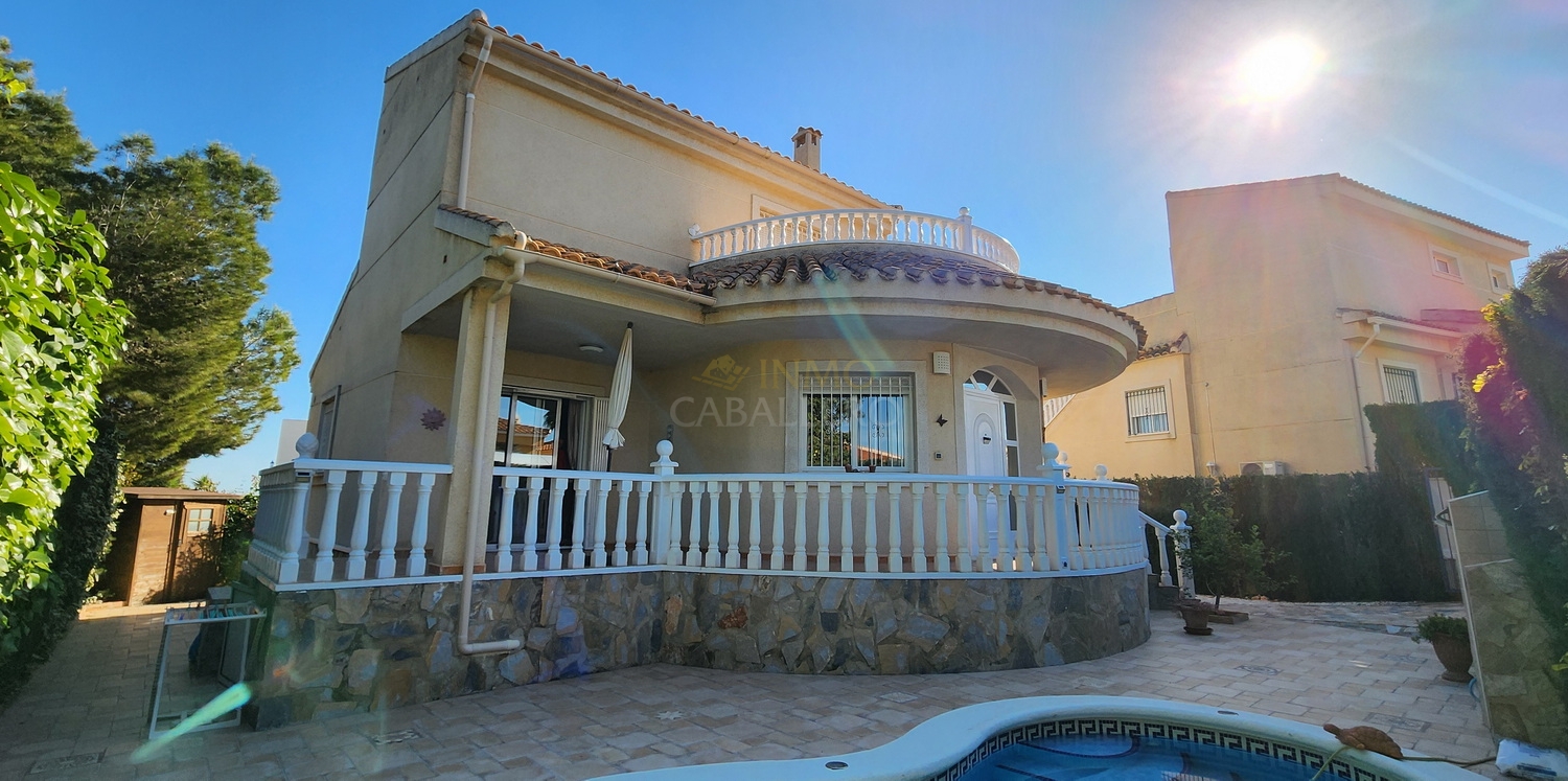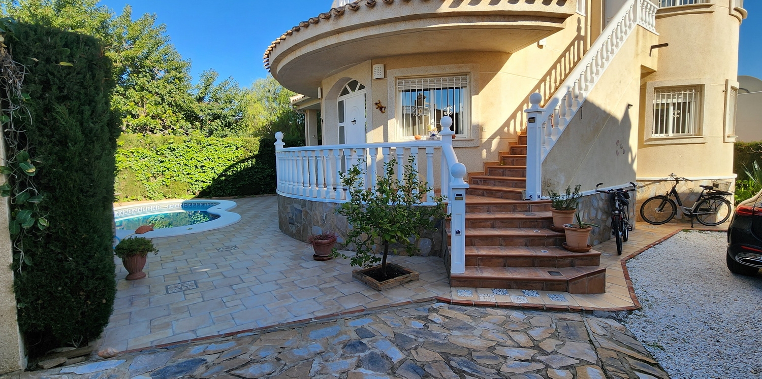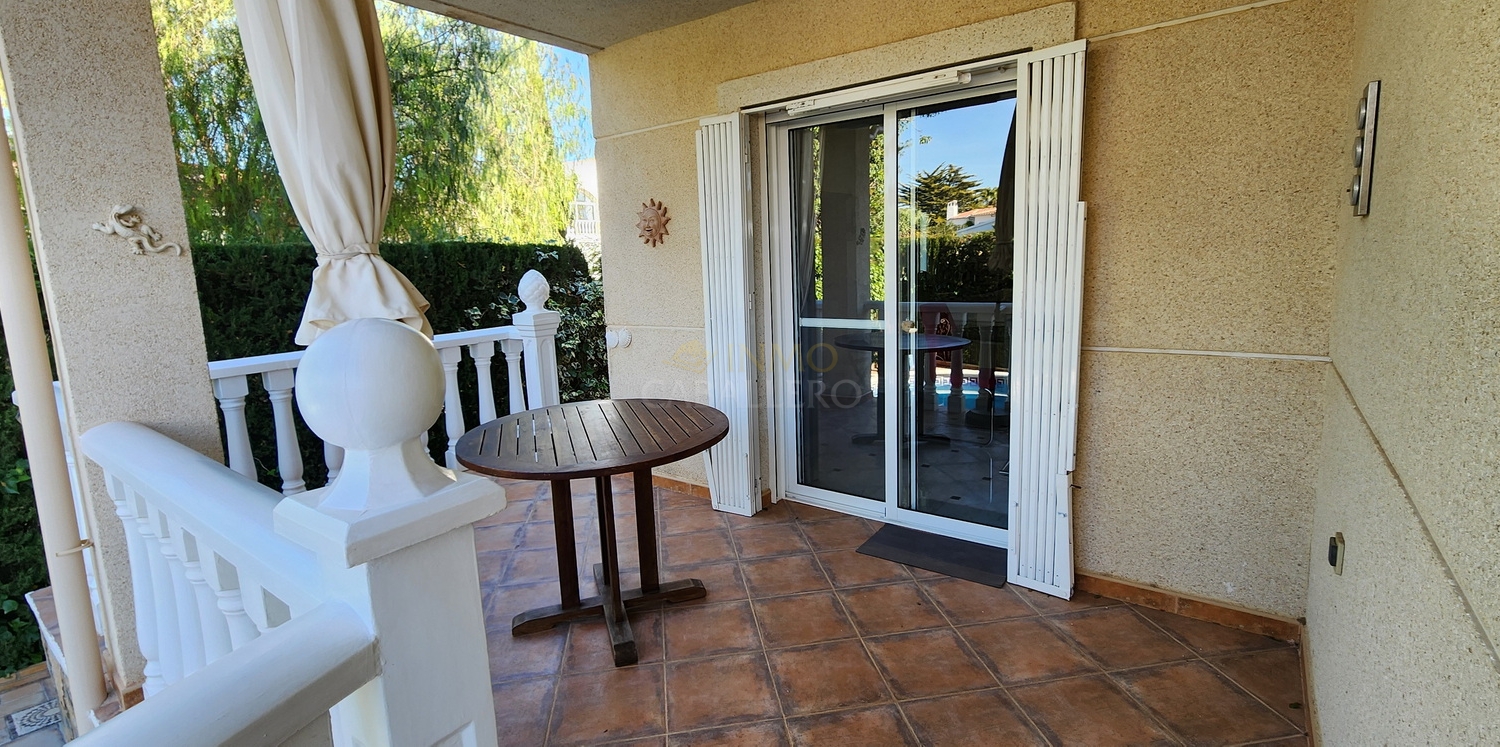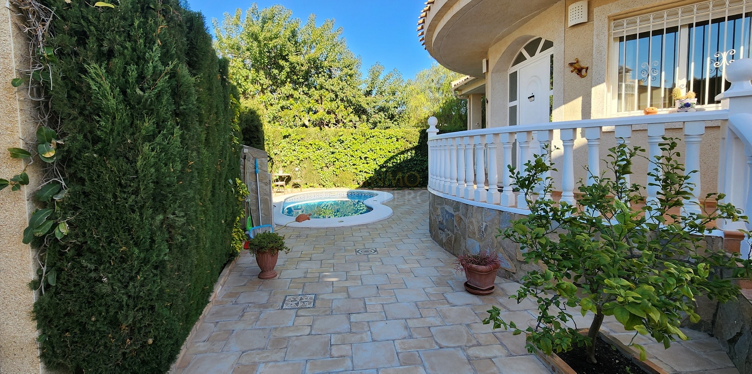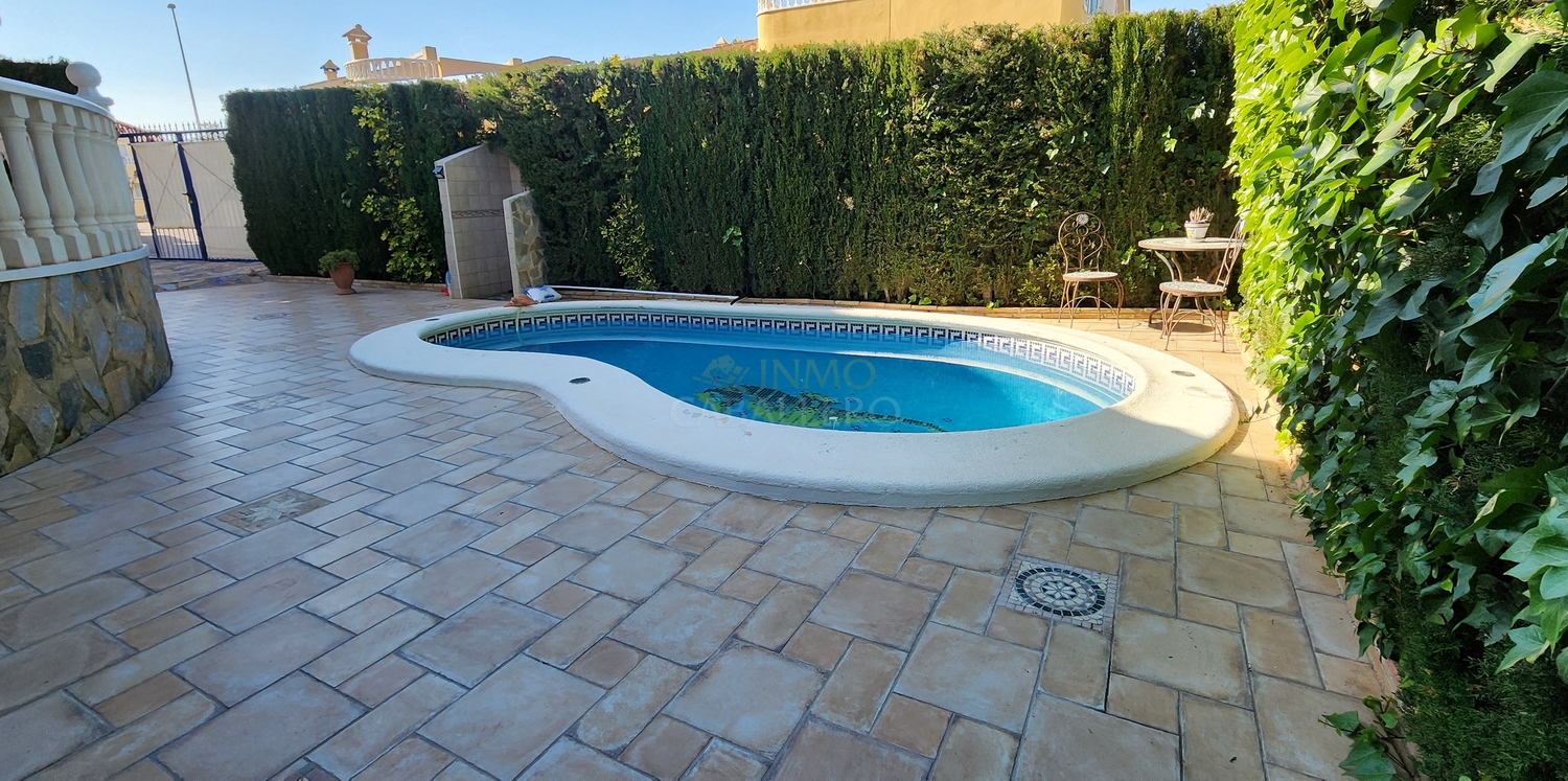Chalet de dos plantas con piscina privada de agua salina, situado en una parcela de 340 m², ideal para disfrutar de privacidad, confort y espacios exteriores bien aprovechados.