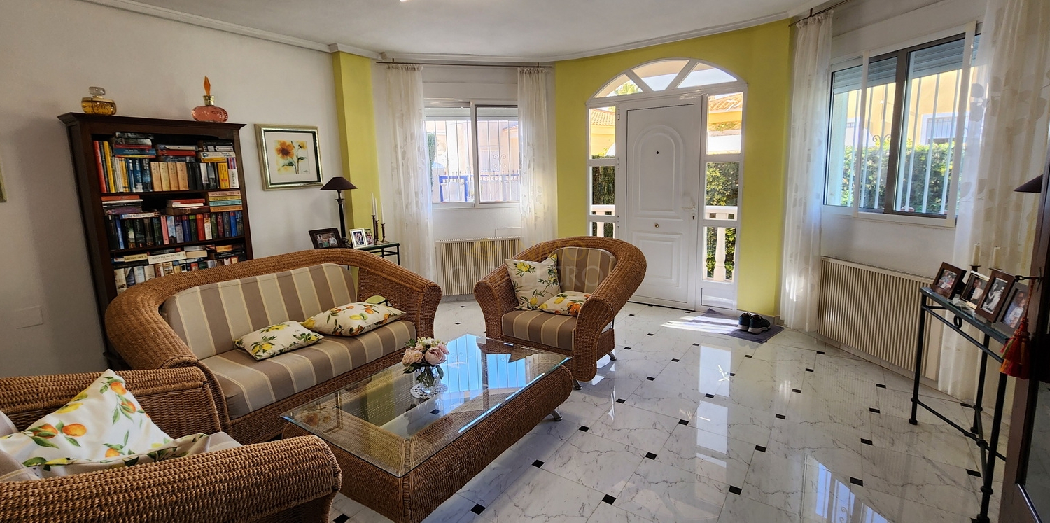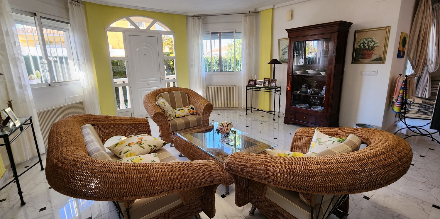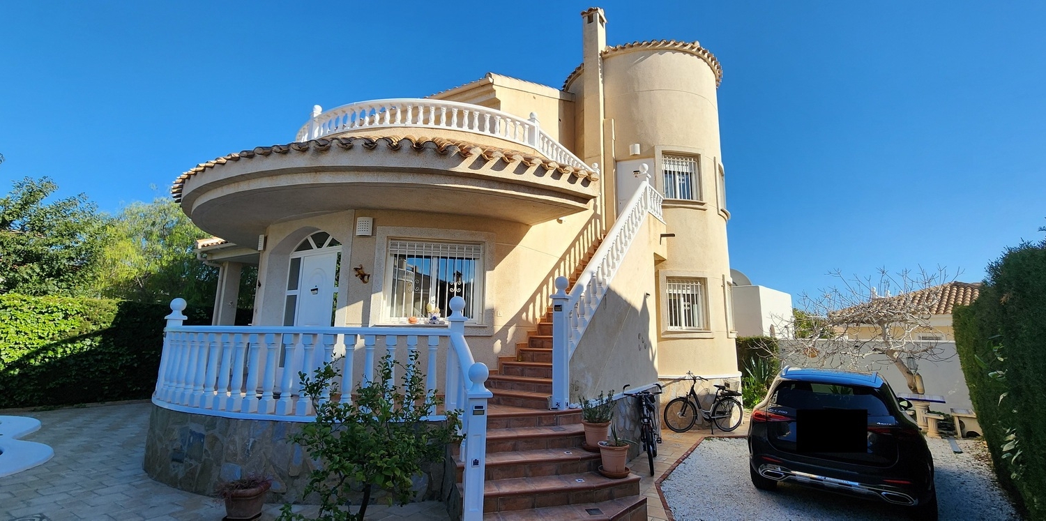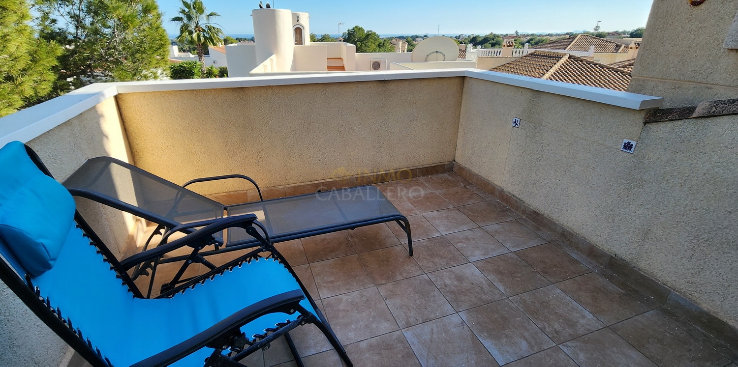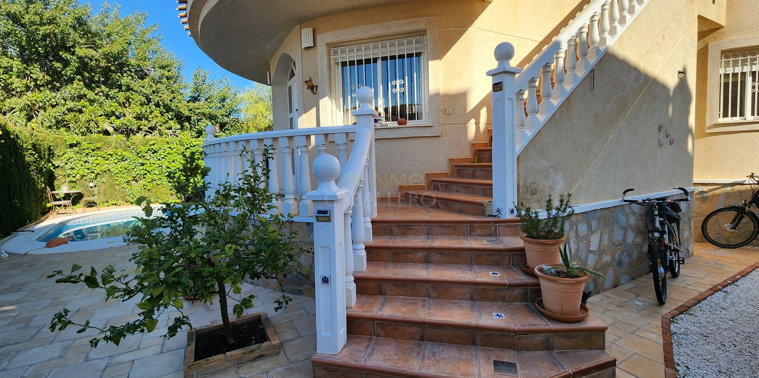 Chalet de dos plantas con piscina privada de agua salina, situado en una parcela de 340 m², ideal para disfrutar de privacidad, confort y espacios exteriores bien aprovechados.