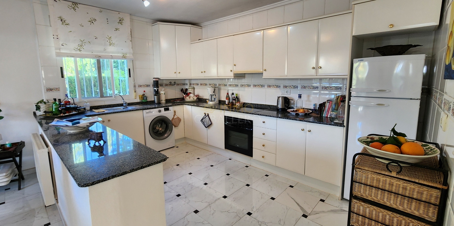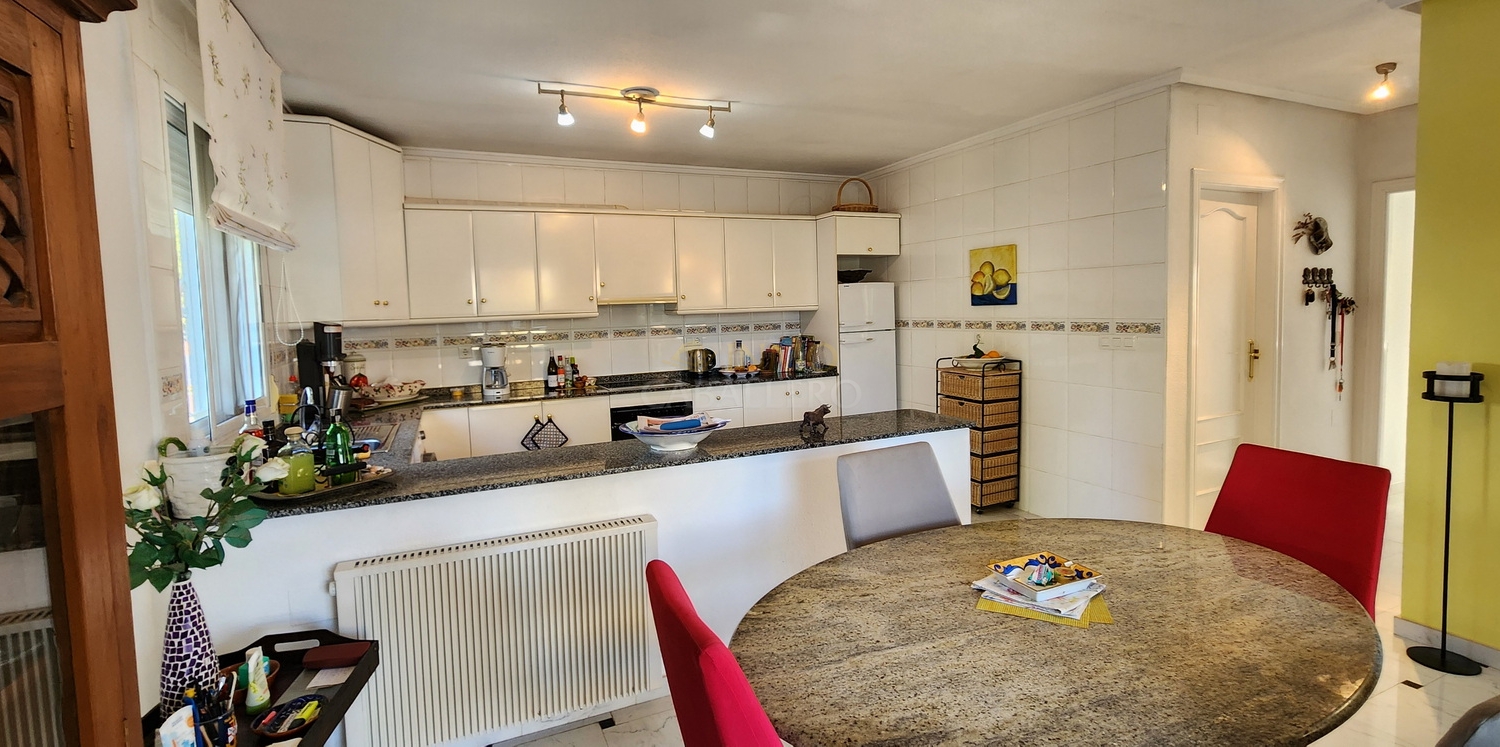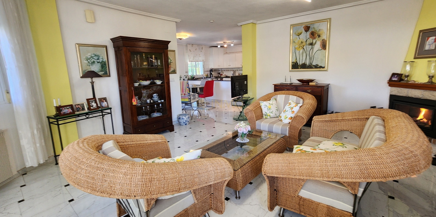La planta baja ofrece un amplio y luminoso salón con chimenea de gas, una gran zona de estar, comedor con acceso directo a una terraza cubierta, espaciosa cocina americana, un dormitorio y un cuarto de baño completo.