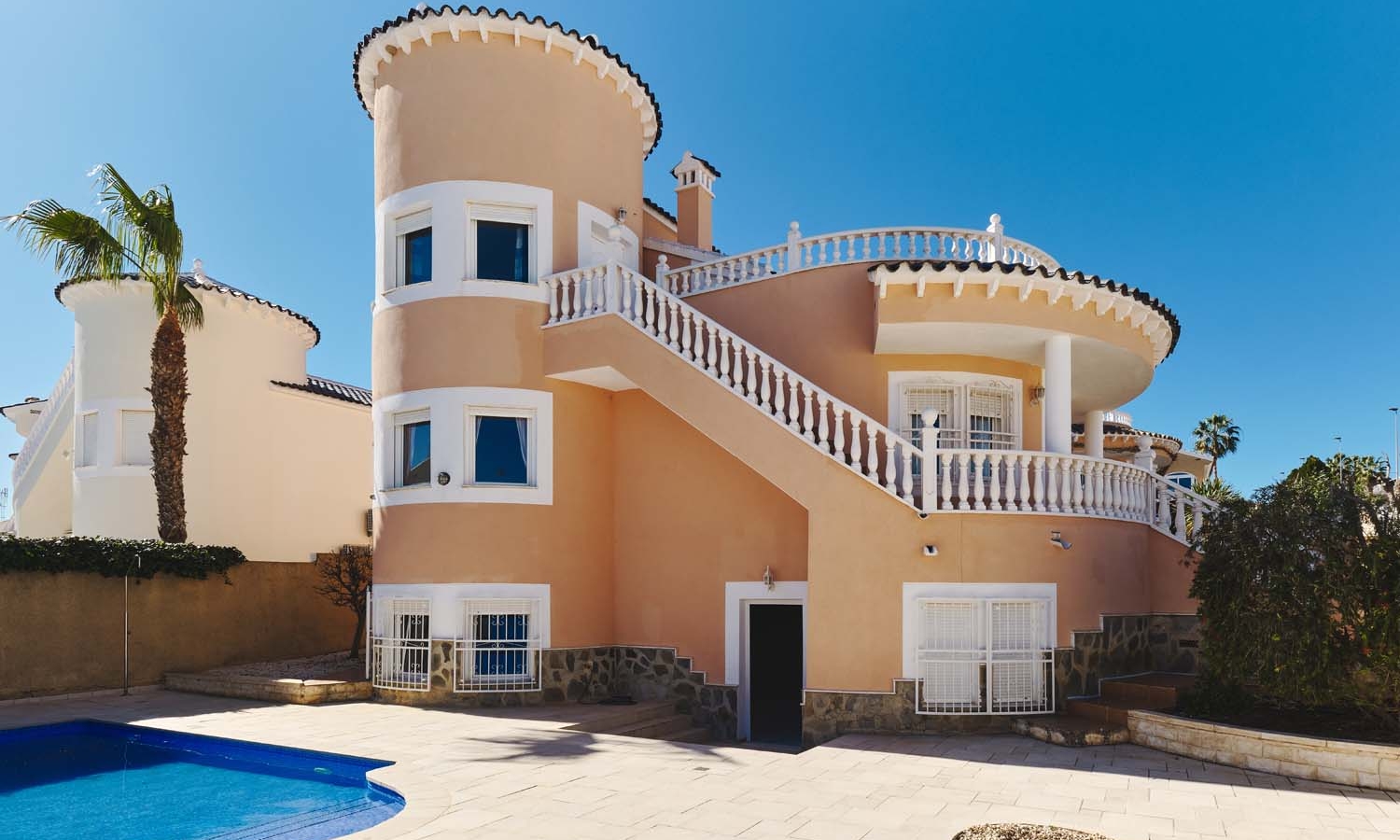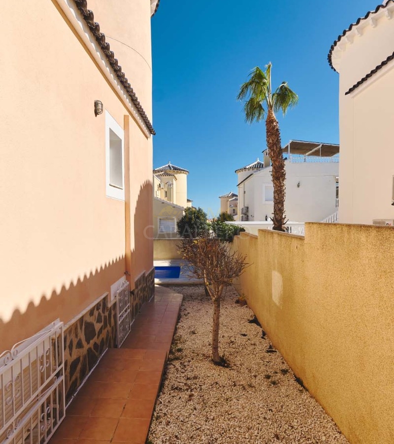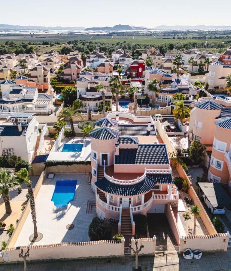 Chalet independiente de tres dormitorios y dos baños, piscina privada y un amplio sótano terminado que ofrece numerosas posibilidades de desarrollo. Ubicado en una zona tranquila y codiciada, cerca de los comercios y servicios del popular pueblo de Pinar de Campoverde, se encuentra a solo 10 km de las playas con Bandera Azul de Torre de la Horadada y Mil Palmeras.