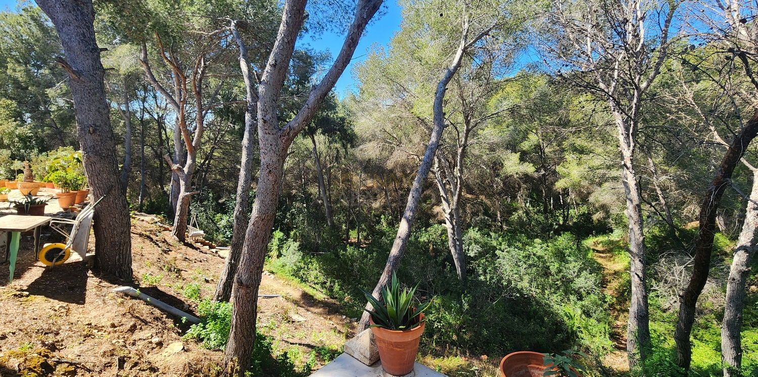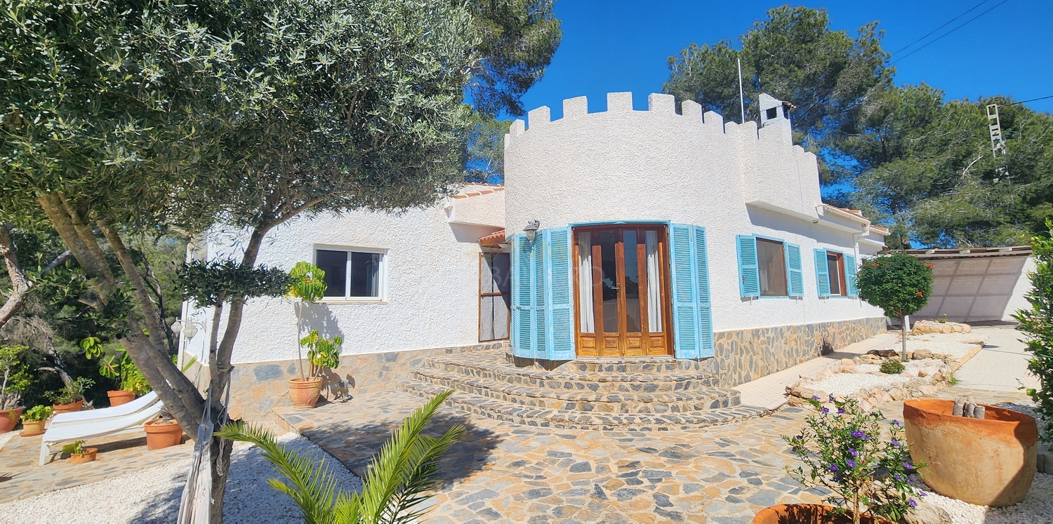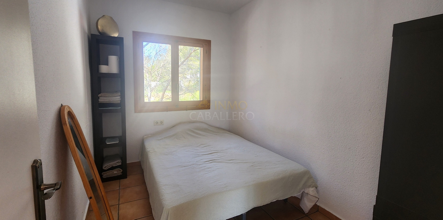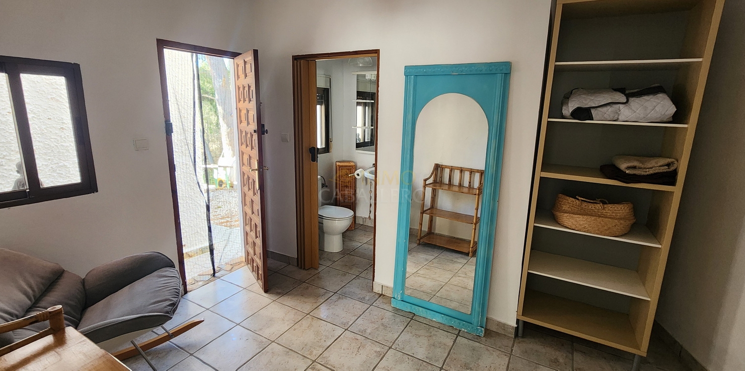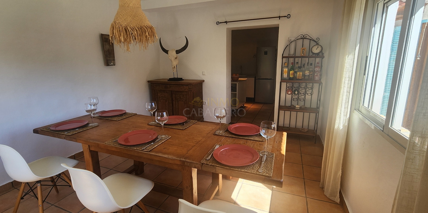 Chalet de estilo ibicenco con piscina privada, situado en una amplia parcela de 1.626 m² rodeada de naturaleza. La vivienda, distribuida en una sola planta, ofrece un ambiente cómodo y acogedor.