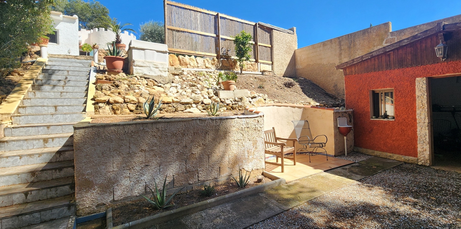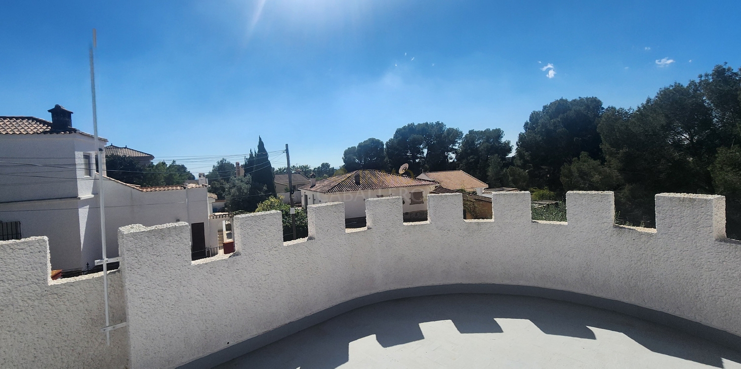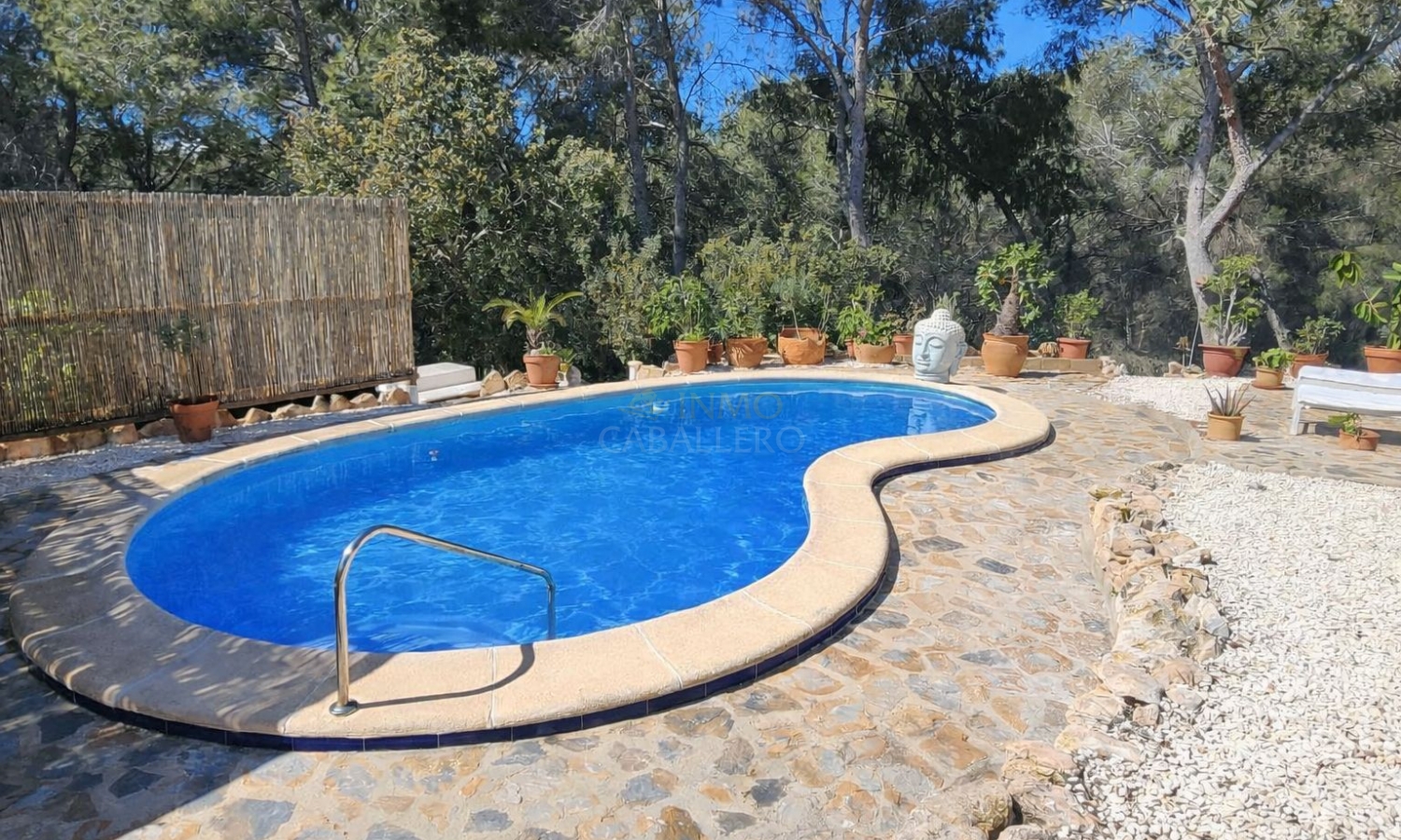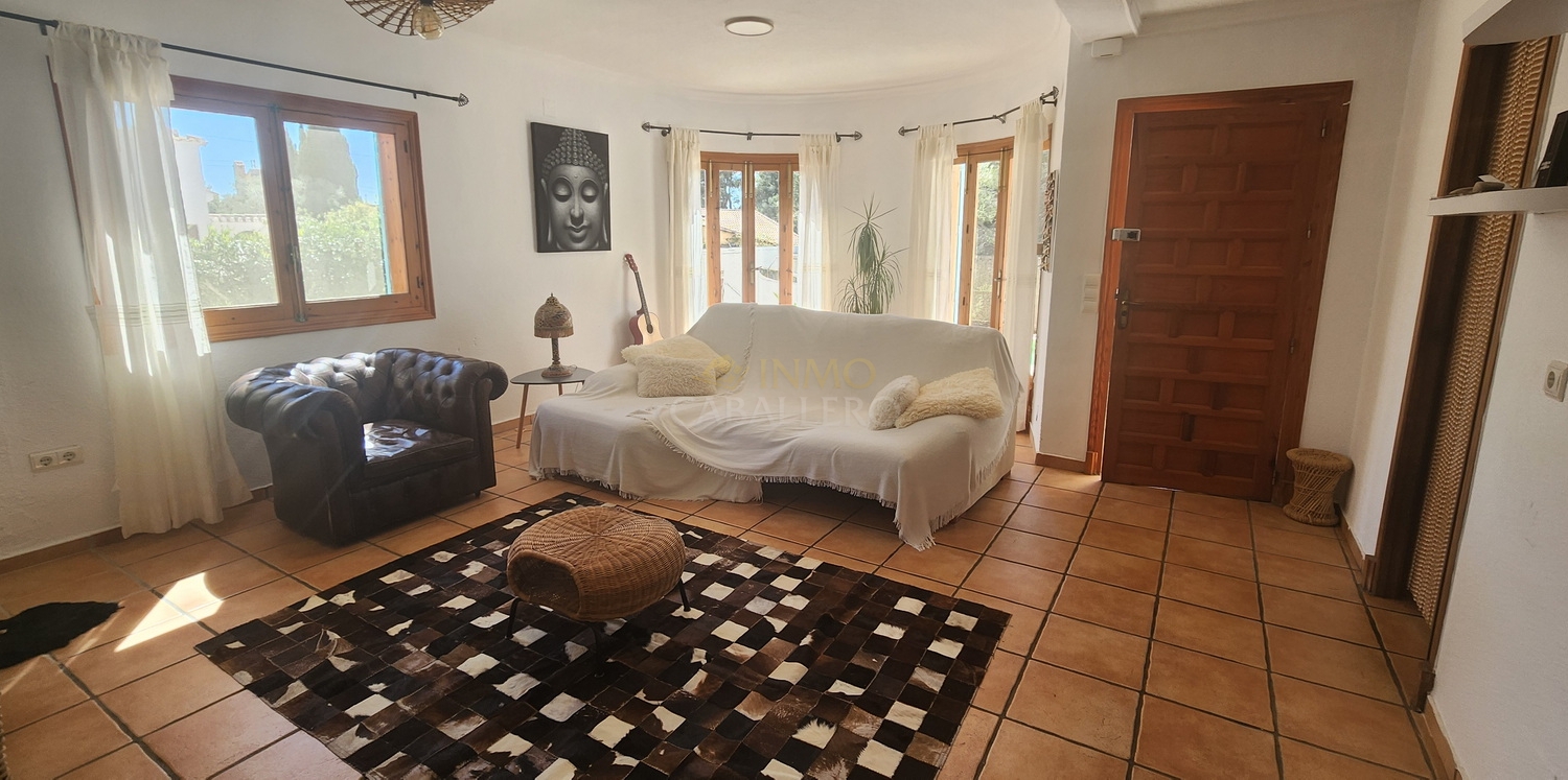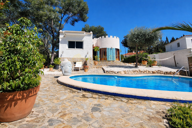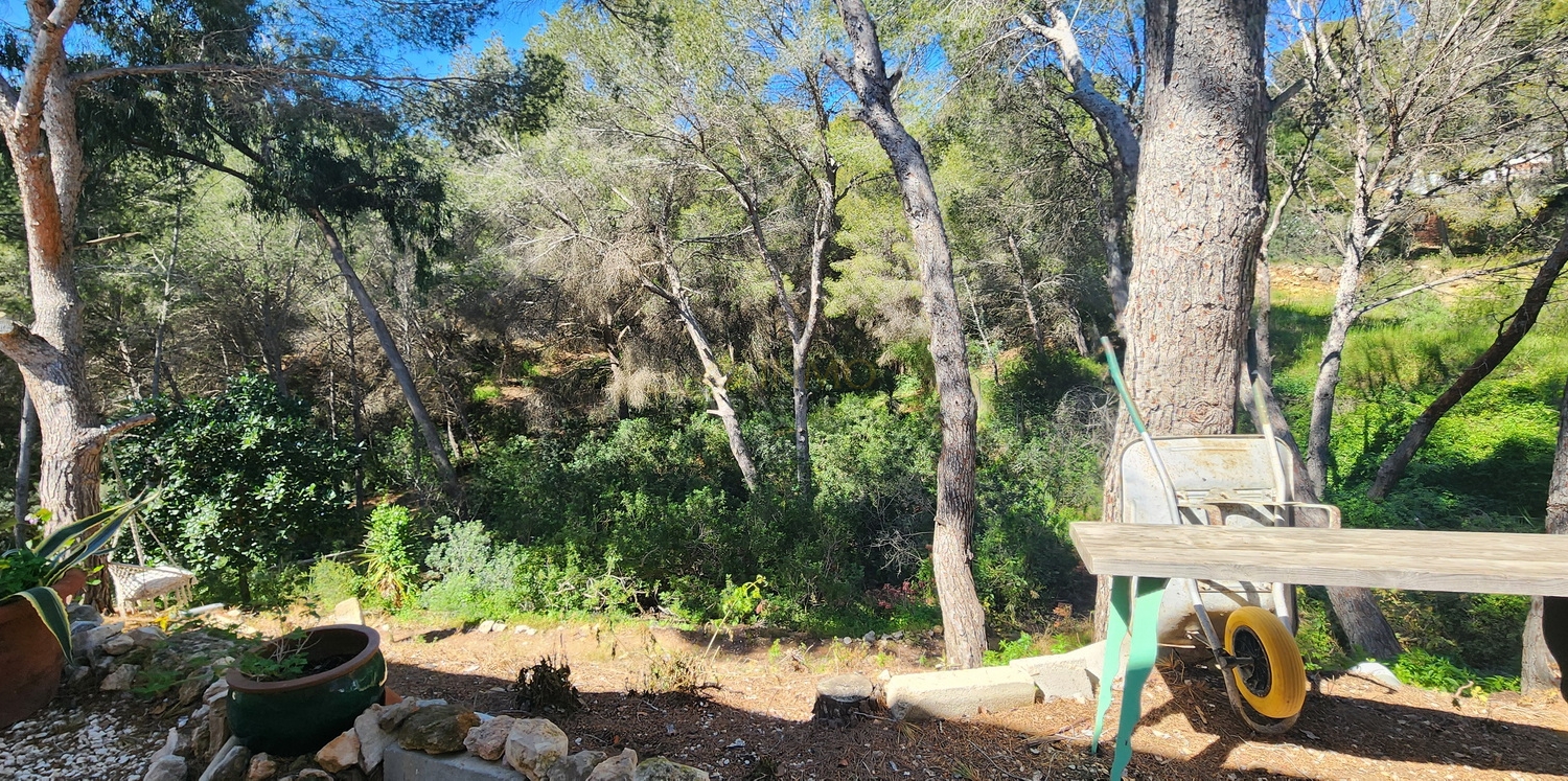 Chalet de estilo ibicenco con piscina privada, situado en una amplia parcela de 1.626 m² rodeada de naturaleza. La vivienda, distribuida en una sola planta, ofrece un ambiente cómodo y acogedor.