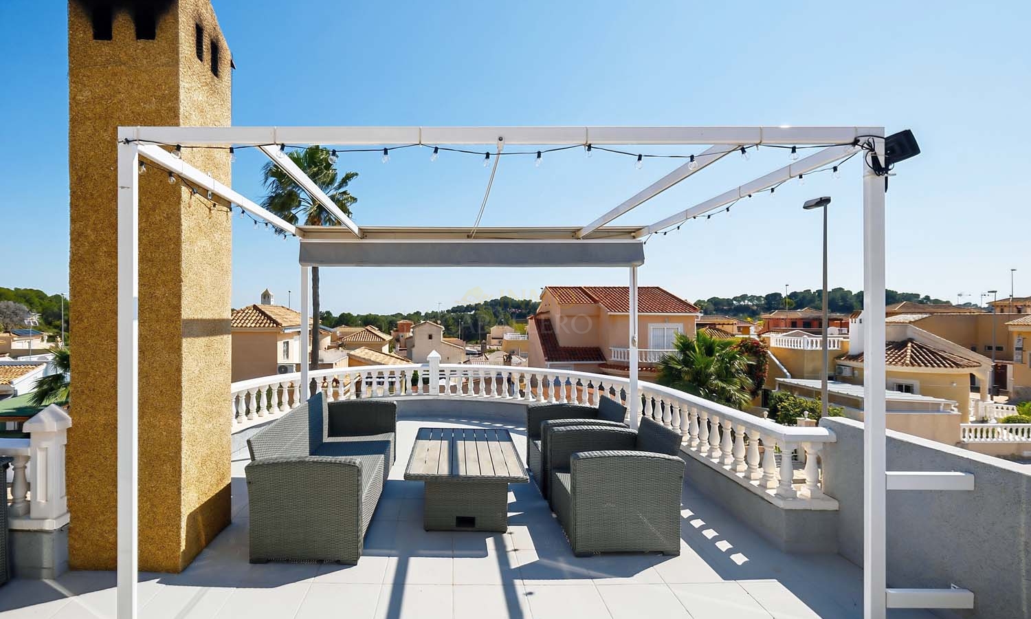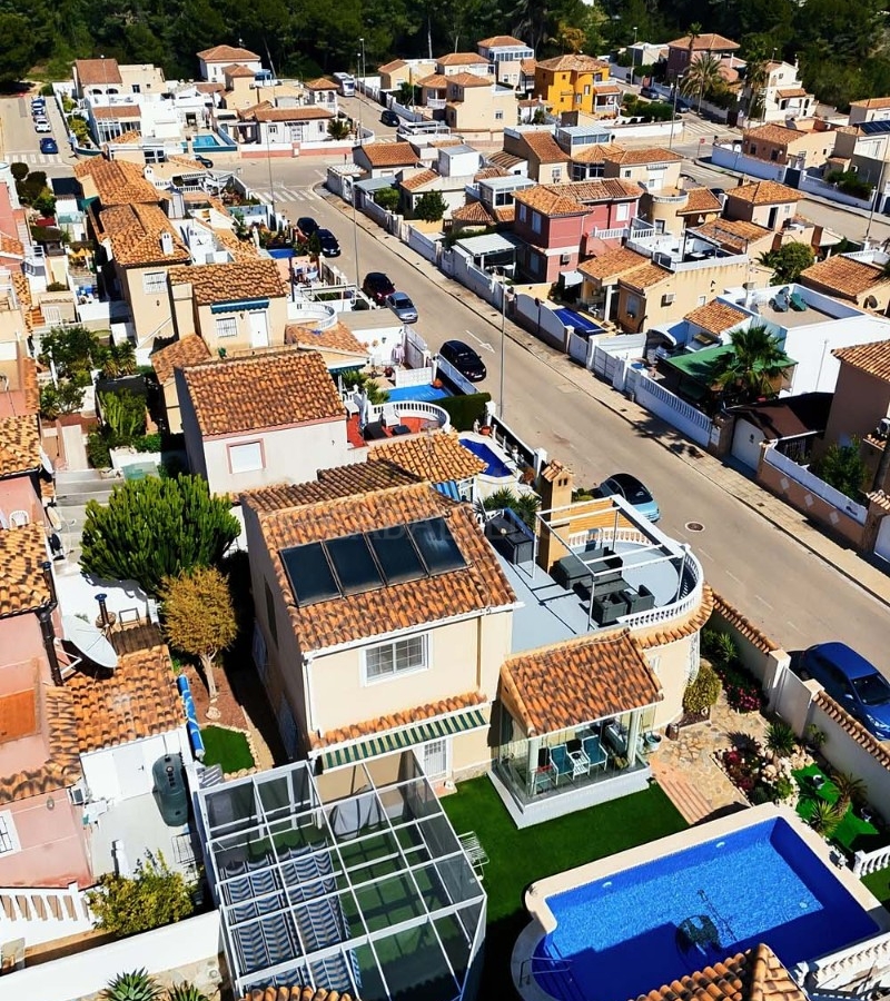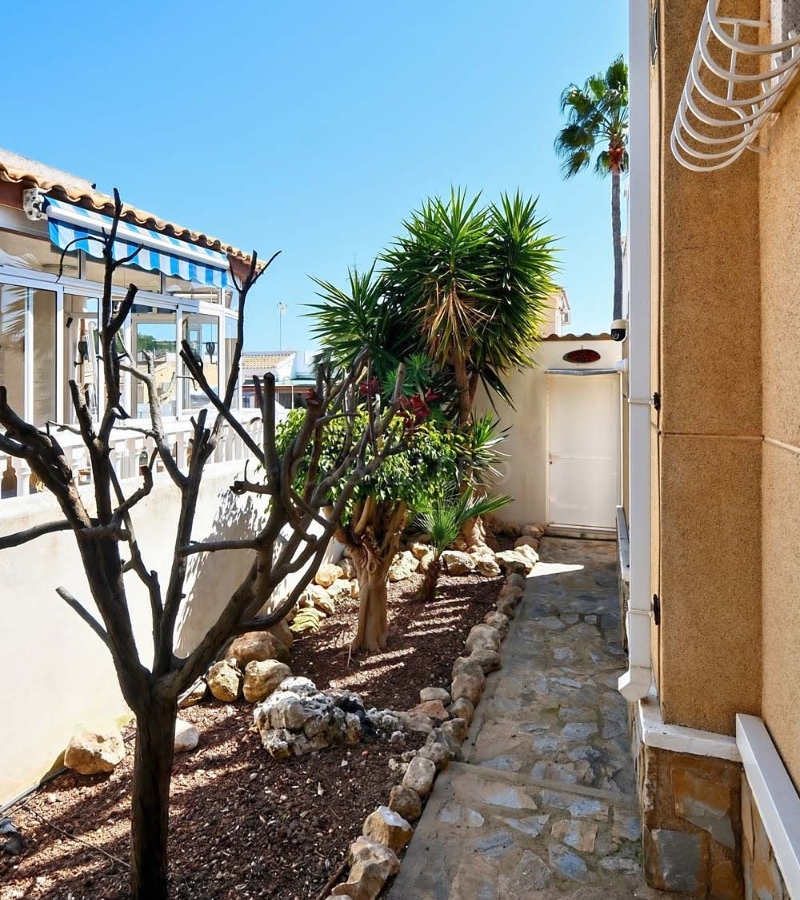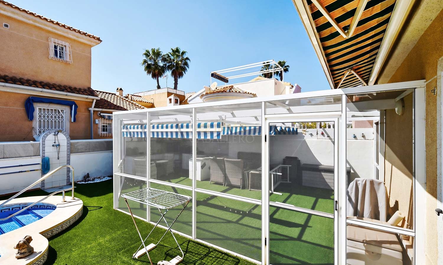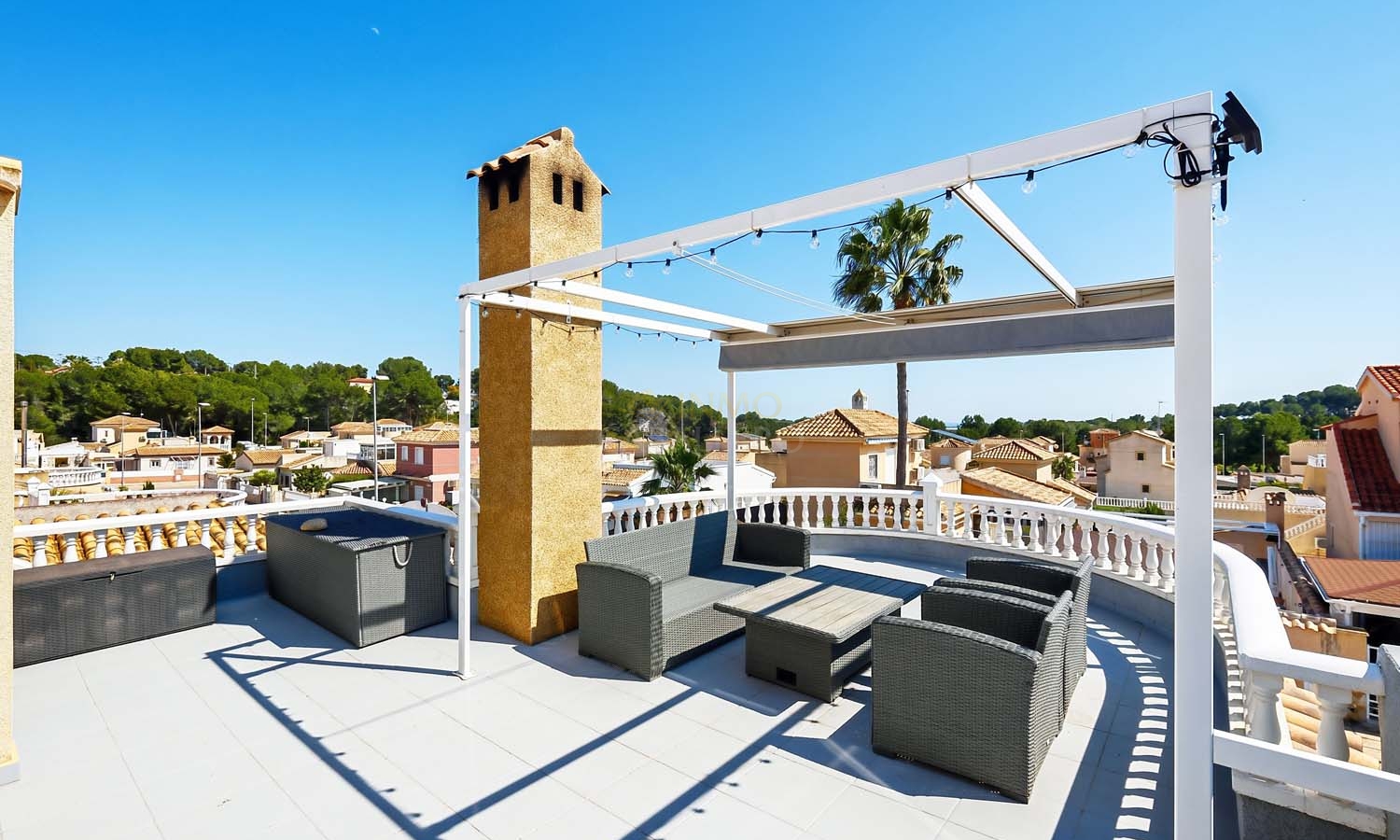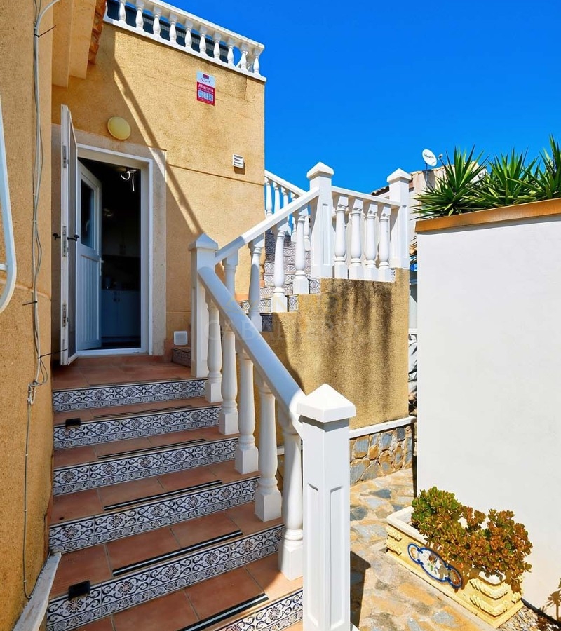 Preciosa y espaciosa villa independiente de tres dormitorios y dos baños con piscina privada en el codiciado pueblo de Pinar de Campoverde. Esta fabulosa villa se encuentra en una tranquila calle de sentido único, al borde del Parque Natural de Río Seco, a tan solo 10 km de las populares playas con Bandera Azul de Torre de la Horadada y Mil Palmeras.