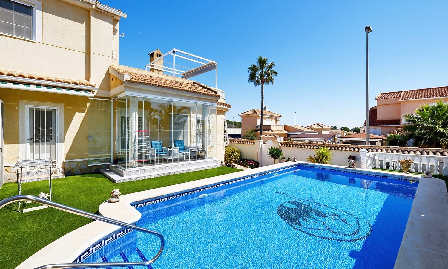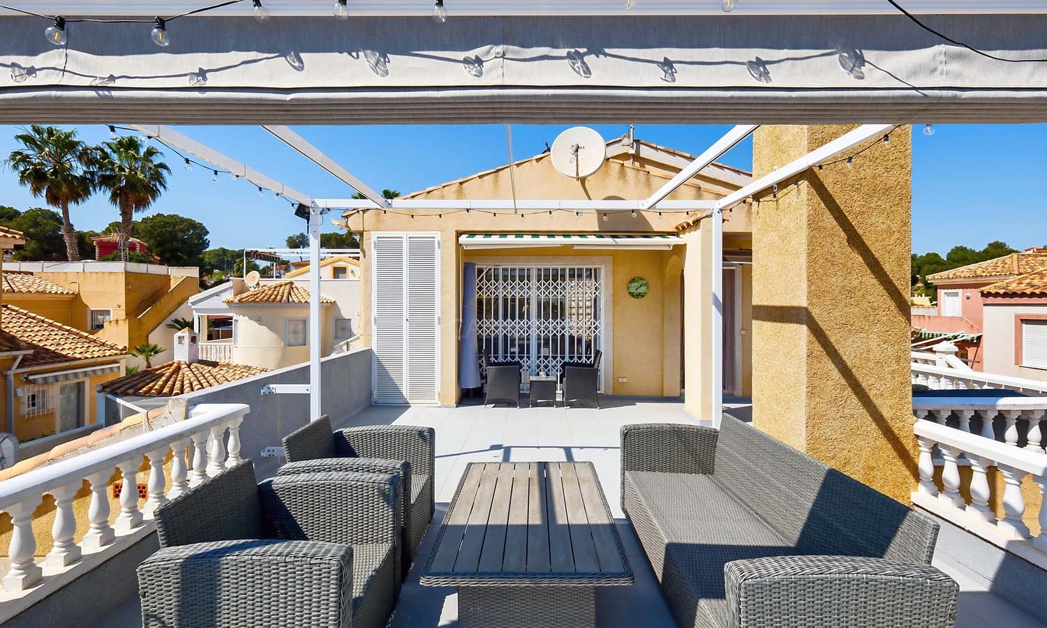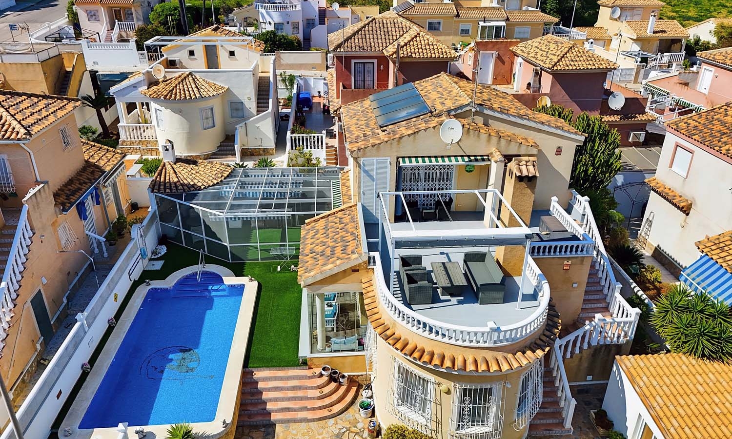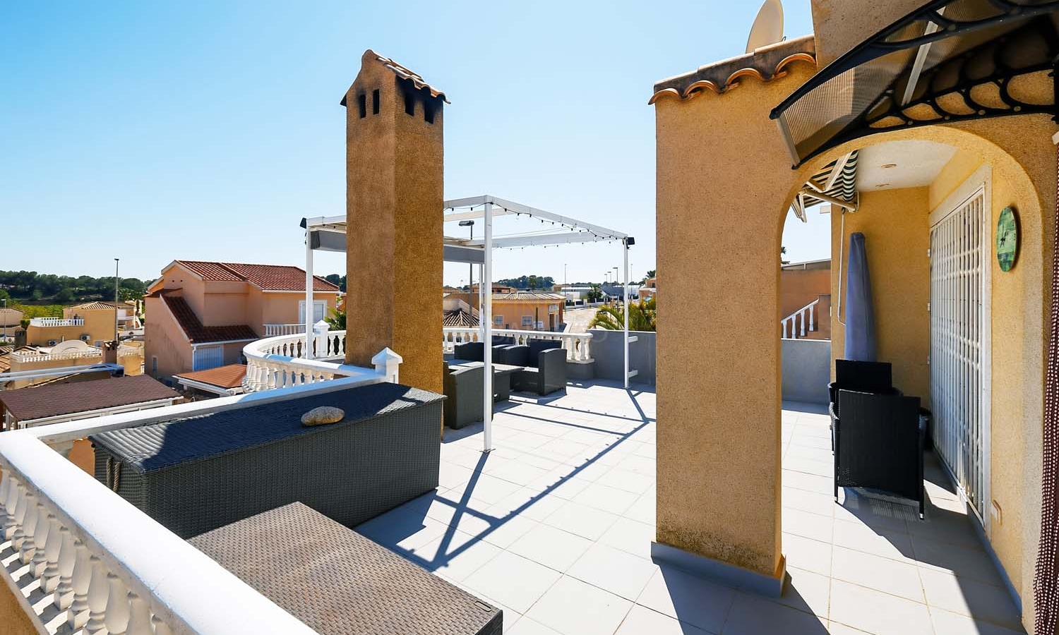 Preciosa y espaciosa villa independiente de tres dormitorios y dos baños con piscina privada en el codiciado pueblo de Pinar de Campoverde. Esta fabulosa villa se encuentra en una tranquila calle de sentido único, al borde del Parque Natural de Río Seco, a tan solo 10 km de las populares playas con Bandera Azul de Torre de la Horadada y Mil Palmeras.