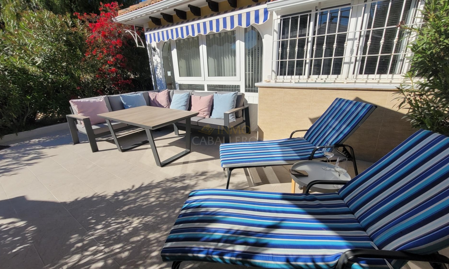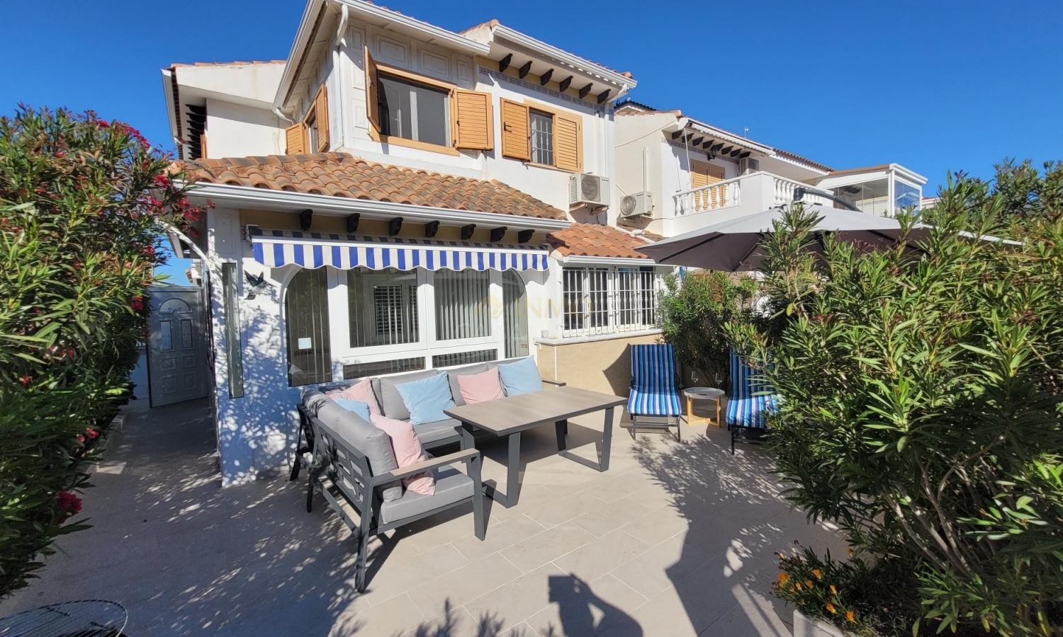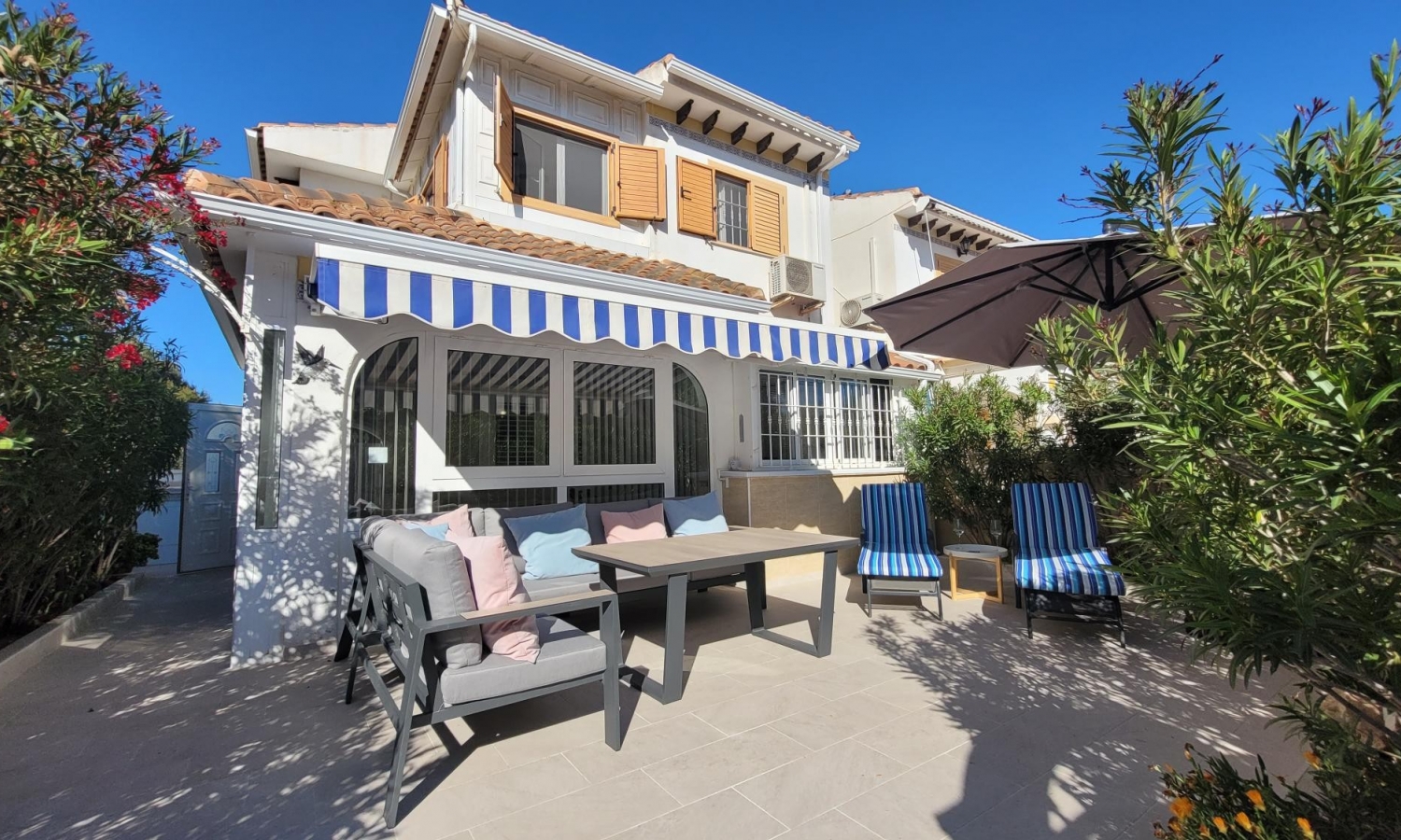La casa está equipada con aire acondicionado en todas las habitaciones y se vende amueblada (excepto muebles de jardín).
