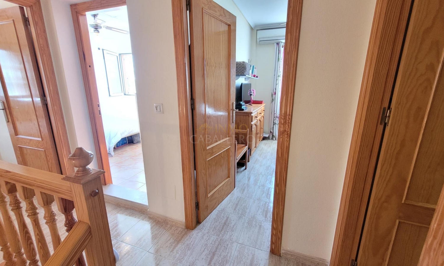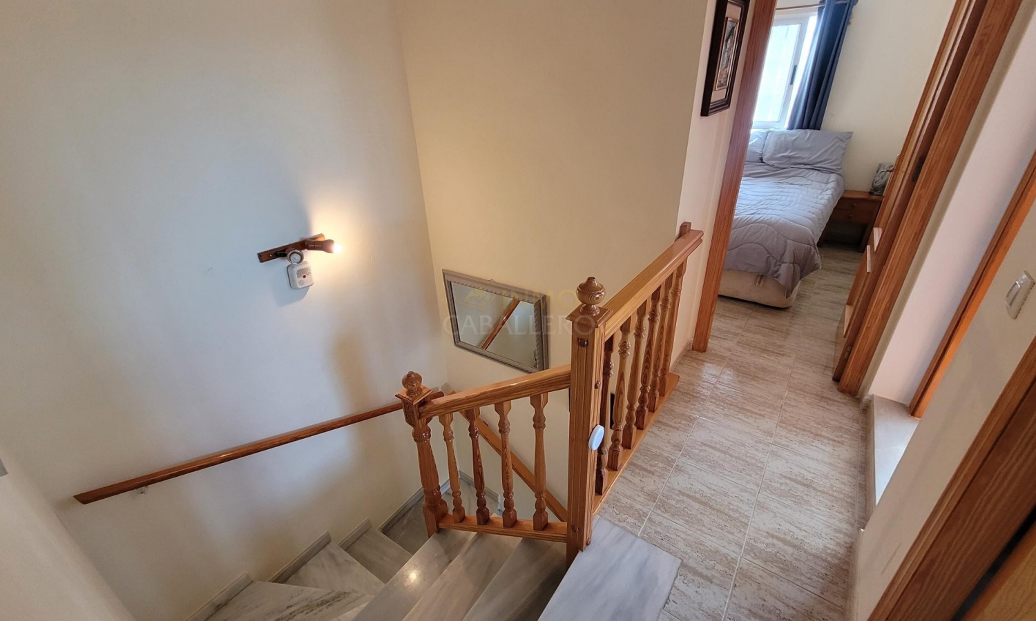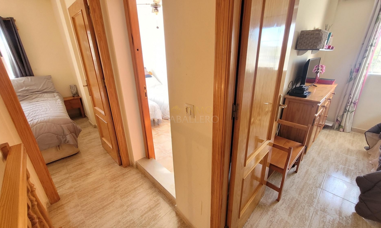 Una terraza en la planta alta se ha cerrado para crear una habitación adicional, actualmente utilizada como tercer dormitorio.